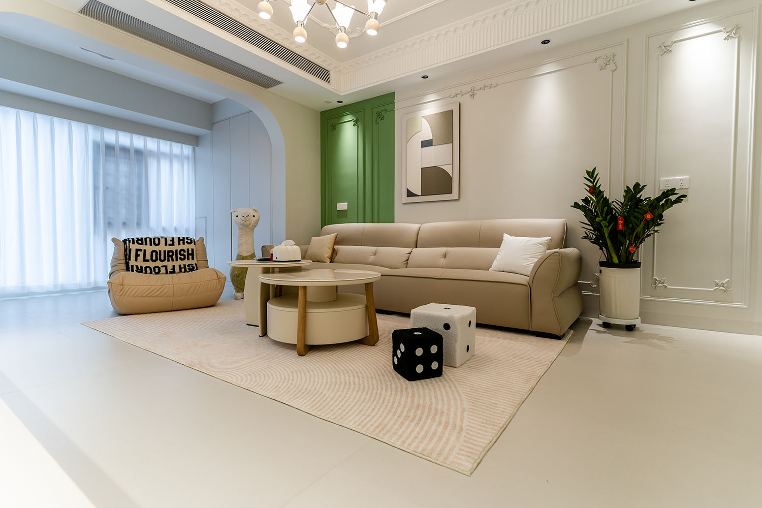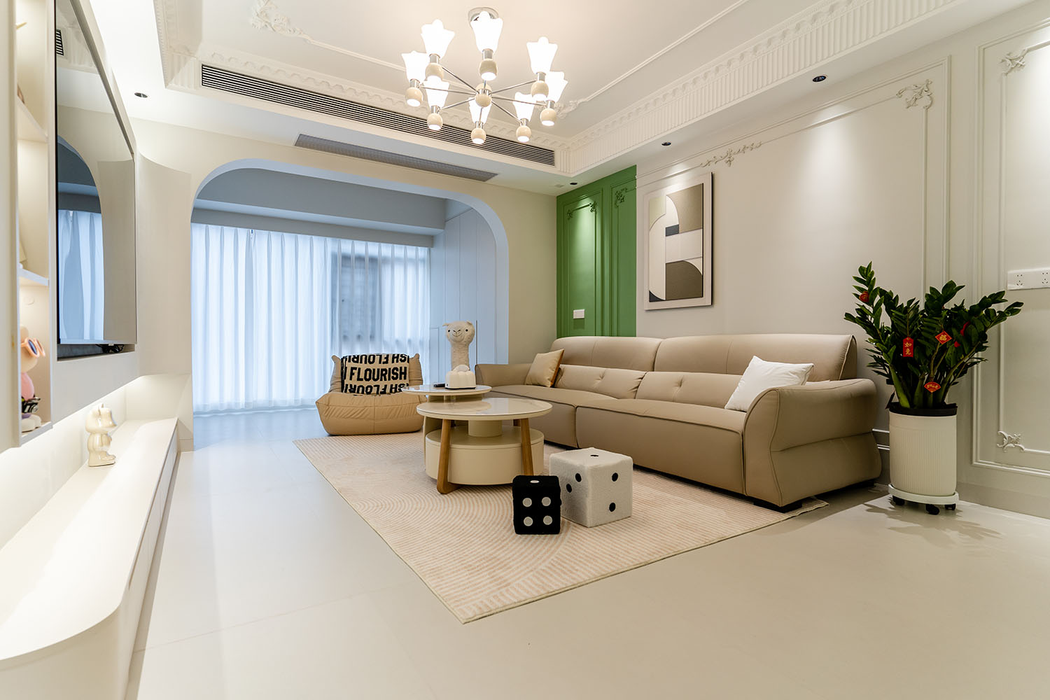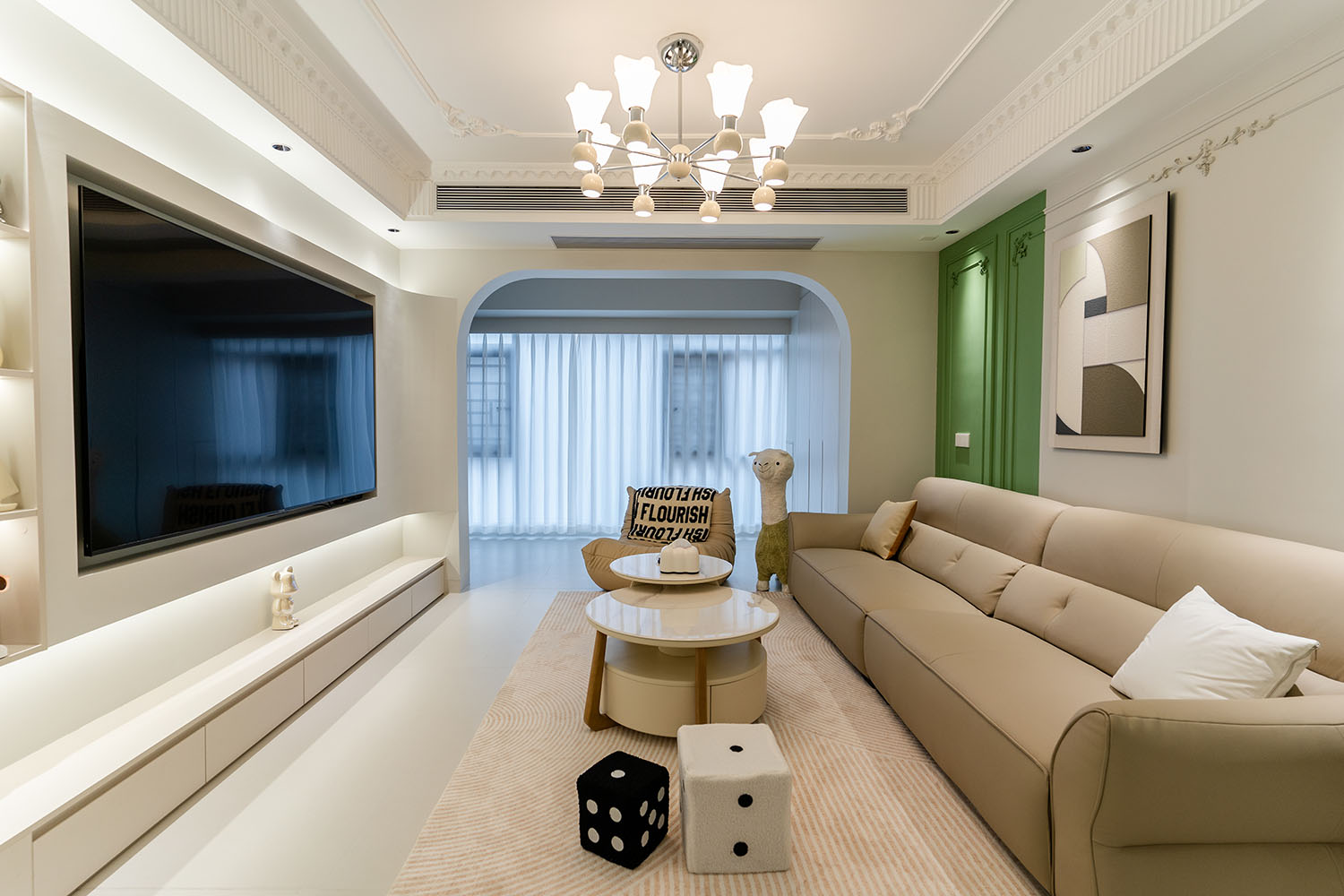 現(xiàn)代奶油風(fēng)以其溫柔的色調(diào)、圓潤的線條和治愈的氛圍,成為當(dāng)下最受歡迎的家居風(fēng)格之一。它完美融合了現(xiàn)代風(fēng)格的簡潔骨架與奶油系的柔和特質(zhì),營造出安全、舒適且充滿高級(jí)感的居住空間。本案以株洲翡翠公園128平方米的戶型為藍(lán)本,深度解析如何將這一風(fēng)格轉(zhuǎn)化為可感可觸的宜居現(xiàn)實(shí)。 本案的核心設(shè)計(jì)理念是 “柔和的包裹感” 。旨在通過設(shè)計(jì),讓家成為一個(gè)能溫柔包裹身心的庇護(hù)所。它摒棄了尖銳的棱角和冰冷的材質(zhì),轉(zhuǎn)而運(yùn)用微曲的線條、綿軟的質(zhì)感和溫暖的燈光,共同構(gòu)筑一個(gè)如云朵般輕盈、如奶茶般醇厚的空間氛圍,讓每一天的歸家都成為一場(chǎng)被溫柔以待的儀式。