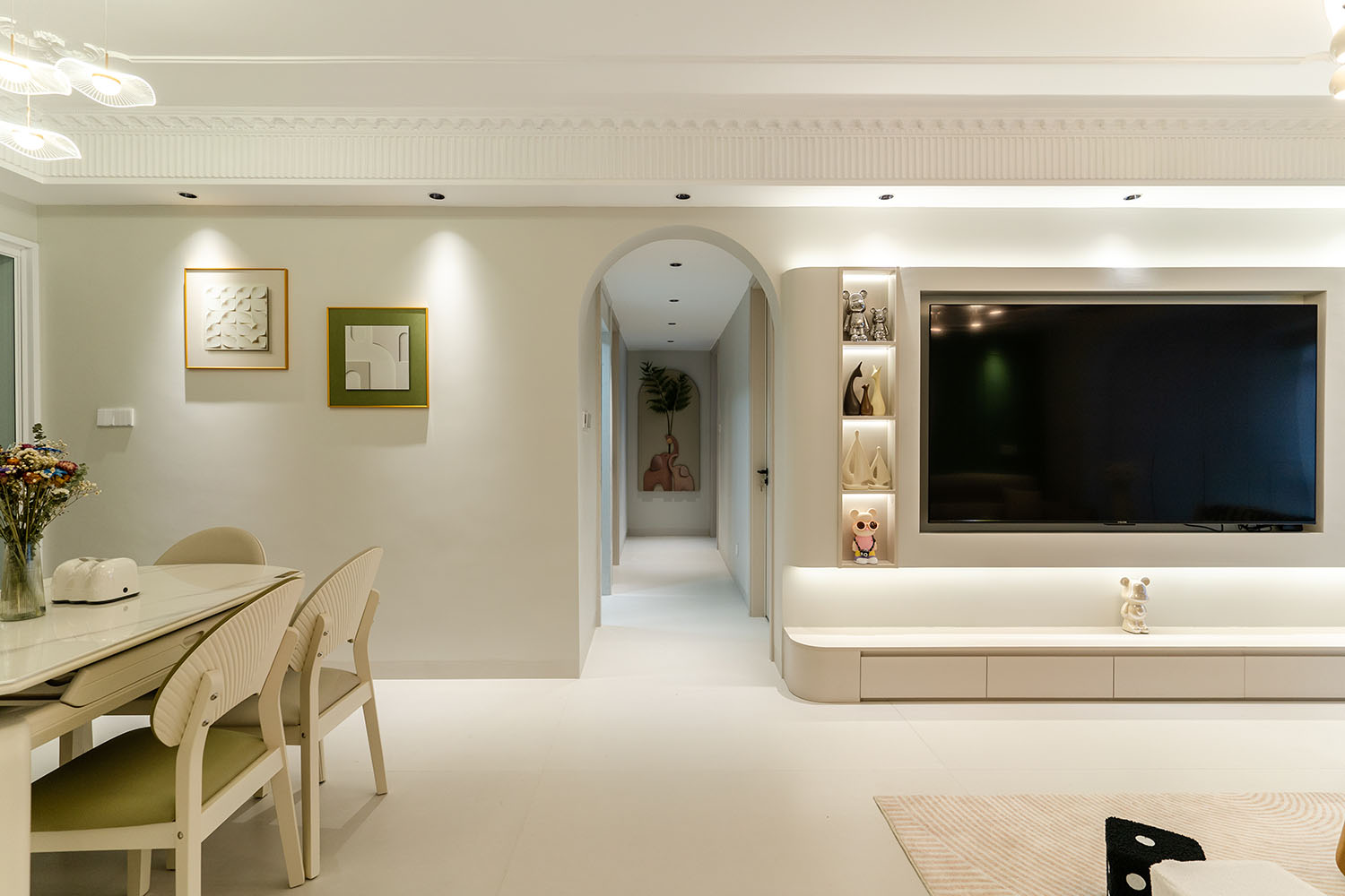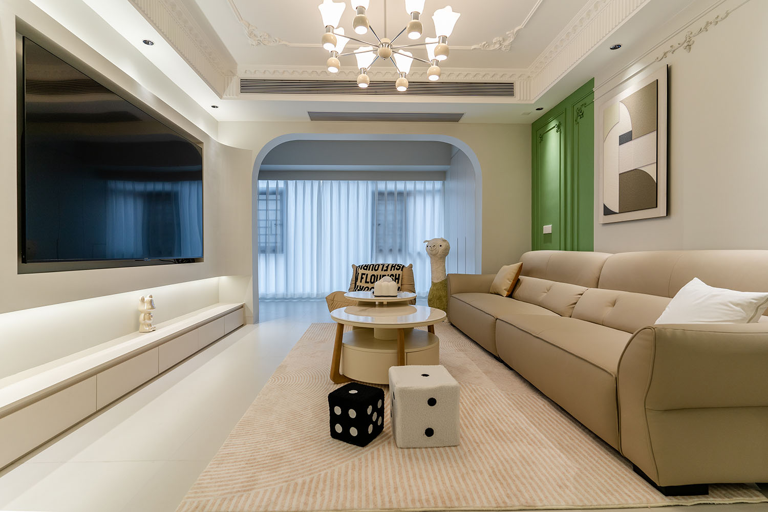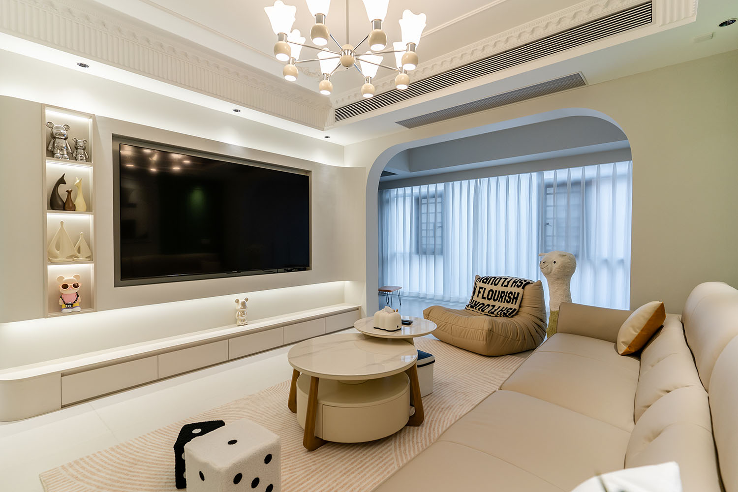 現(xiàn)代奶油風(fēng)以其溫柔的色調(diào)、圓潤的線條和治愈的氛圍,成為當(dāng)下最受歡迎的家居風(fēng)格之一。它完美融合了現(xiàn)代風(fēng)格的簡潔骨架與奶油系的柔和特質(zhì),營造出安全、舒適且充滿高級(jí)感的居住空間。本案以株洲翡翠公園128平方米的戶型為藍(lán)本,深度解析如何將這一風(fēng)格轉(zhuǎn)化為可感可觸的宜居現(xiàn)實(shí)。 本案的核心設(shè)計(jì)理念是 “柔和的包裹感” 。旨在通過設(shè)計(jì),讓家成為一個(gè)能溫柔包裹身心的庇護(hù)所。它摒棄了尖銳的棱角和冰冷的材質(zhì),轉(zhuǎn)而運(yùn)用微曲的線條、綿軟的質(zhì)感和溫暖的燈光,共同構(gòu)筑一個(gè)如云朵般輕盈、如奶茶般醇厚的空間氛圍,讓每一天的歸家都成為一場(chǎng)被溫柔以待的儀式。