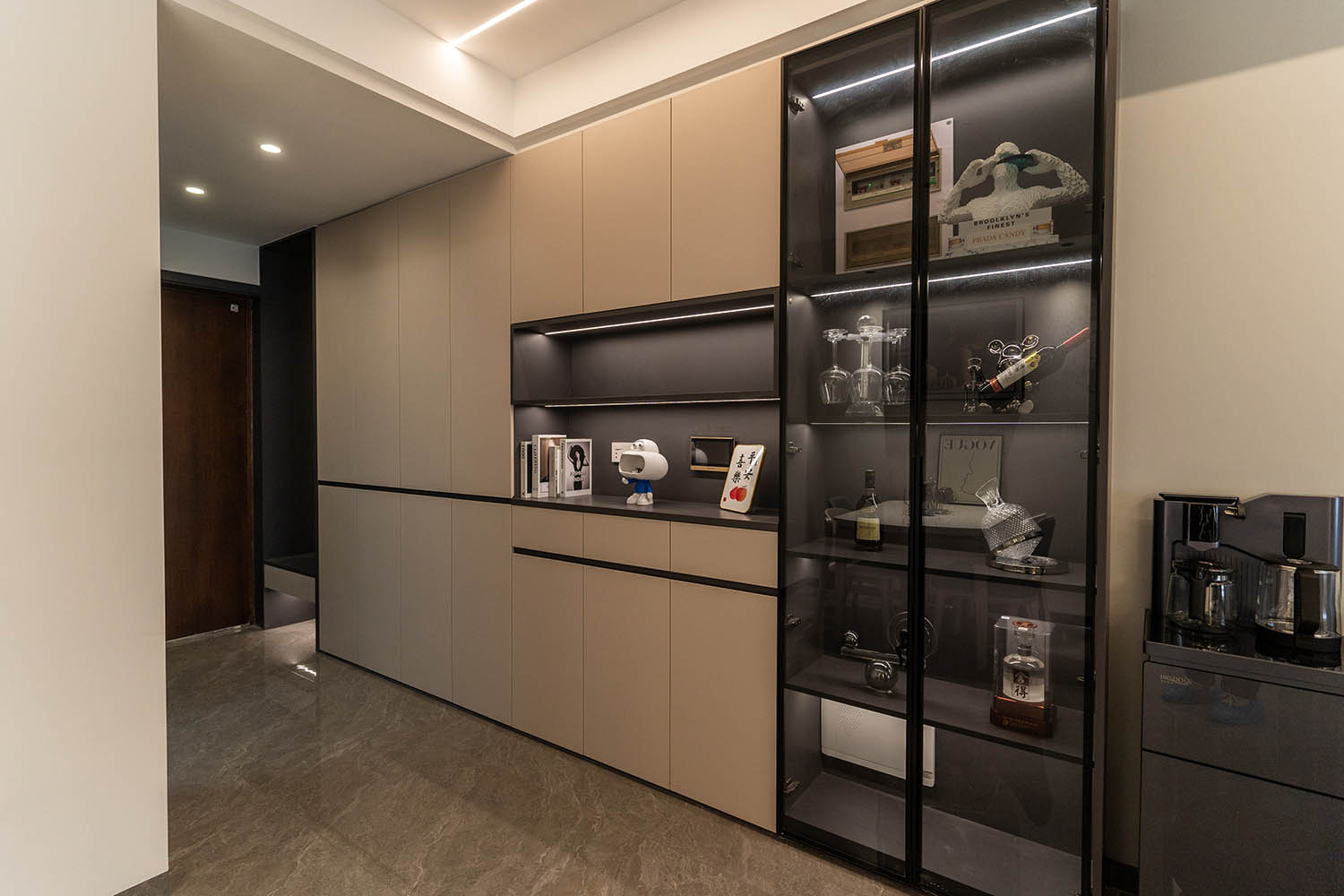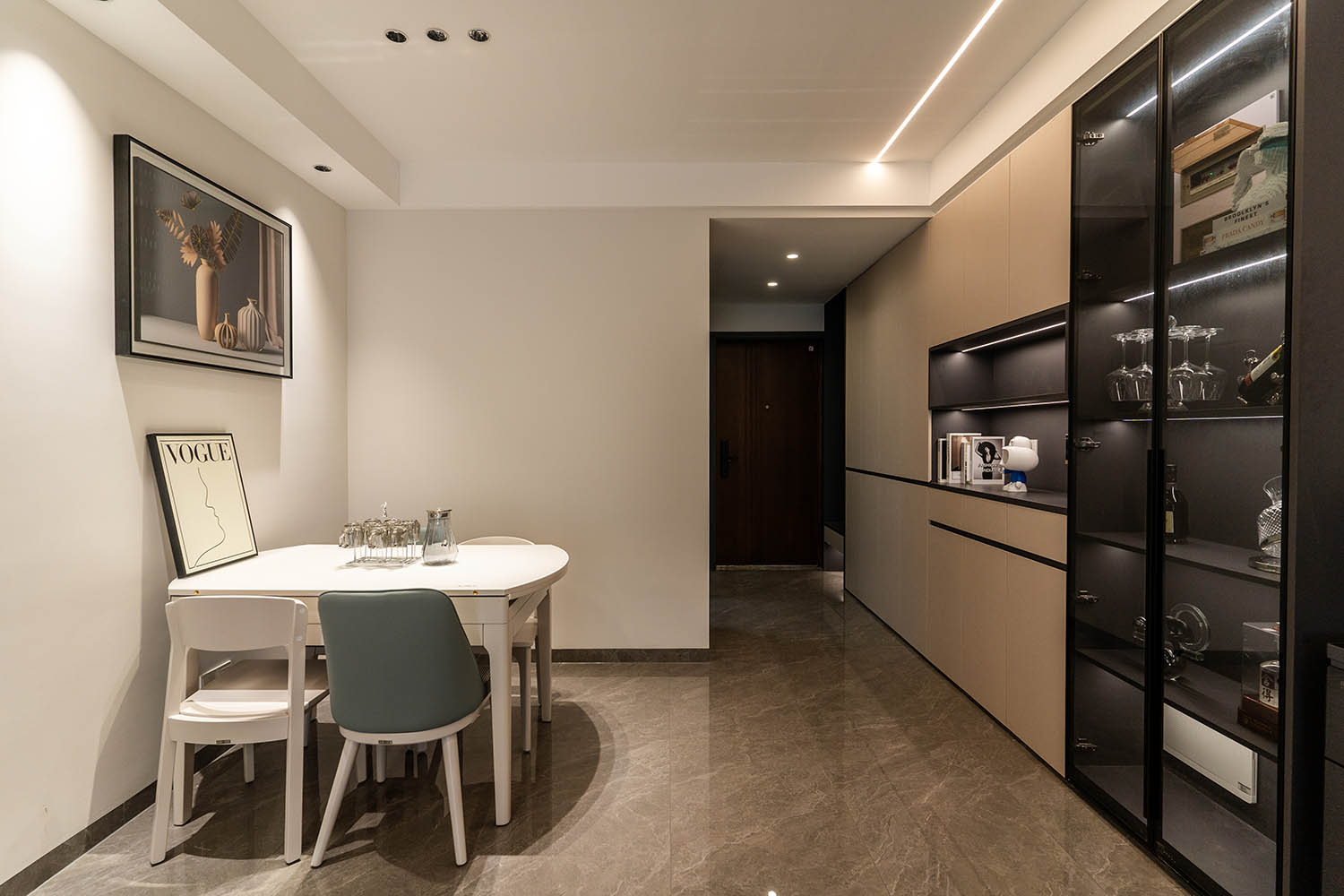 本案的核心設(shè)計(jì)理念是 “簡(jiǎn)而不減” 。旨在通過(guò)精準(zhǔn)的布局、一體化的定制和克制的裝飾,實(shí)現(xiàn)功能性與美學(xué)的完美平衡。設(shè)計(jì)拒絕為形式而形式,每一處都回歸到居住的本質(zhì)需求,在滿足強(qiáng)大收納和流暢動(dòng)線的基礎(chǔ)上,通過(guò)材質(zhì)、光影和線條的細(xì)微變化,營(yíng)造出一個(gè)兼具理性邏輯與感性溫度的現(xiàn)代居所。