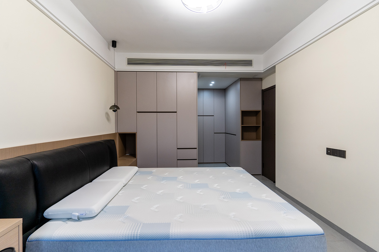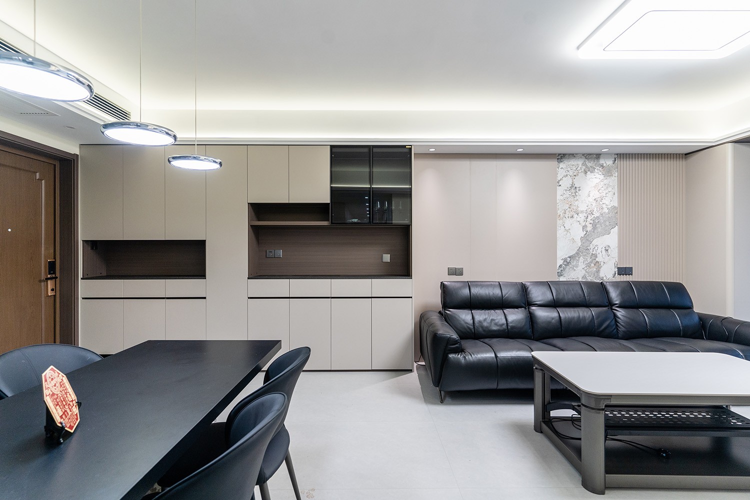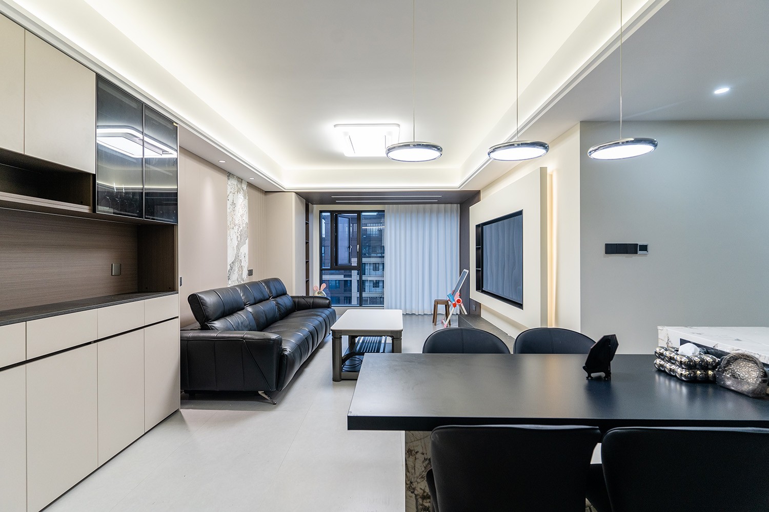設(shè)計(jì)理念:定制化效率,沉浸式舒適 本案的核心設(shè)計(jì)理念是 “功能為綱,體驗(yàn)為魂” 。旨在將115平米的空間視為一個(gè)高效運(yùn)轉(zhuǎn)的精工系統(tǒng)。設(shè)計(jì)摒棄一切非必要的裝飾,將每一寸面積都轉(zhuǎn)化為提升居住品質(zhì)的有效價(jià)值。通過科學(xué)動(dòng)線、模塊化收納與智能人居的考量,為居者量身打造一個(gè)在視覺上極度清爽、在使用上極致便捷、在感受上無比放松的沉浸式居住體驗(yàn)。