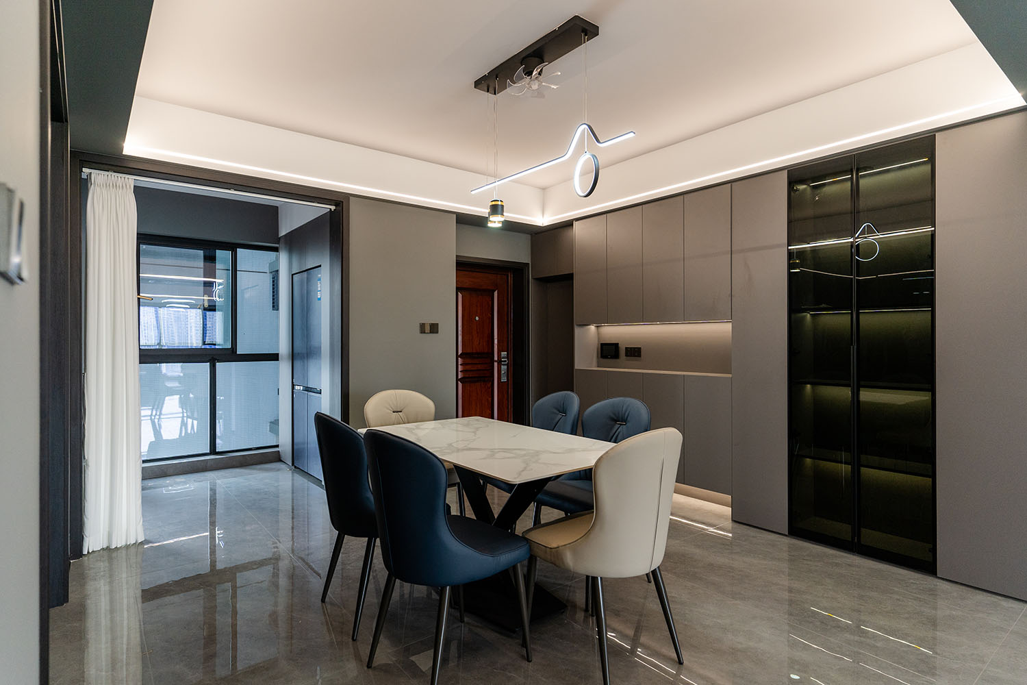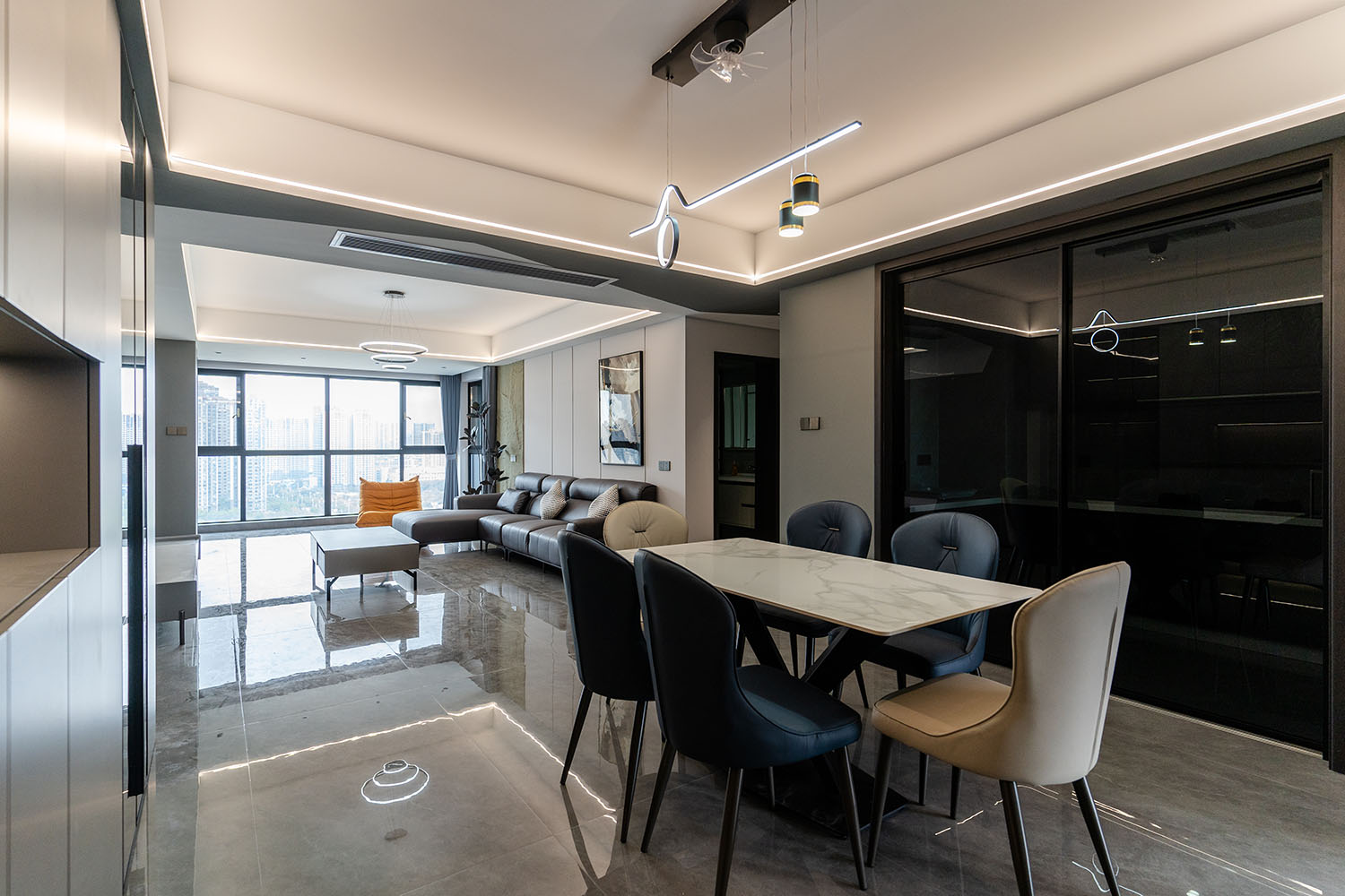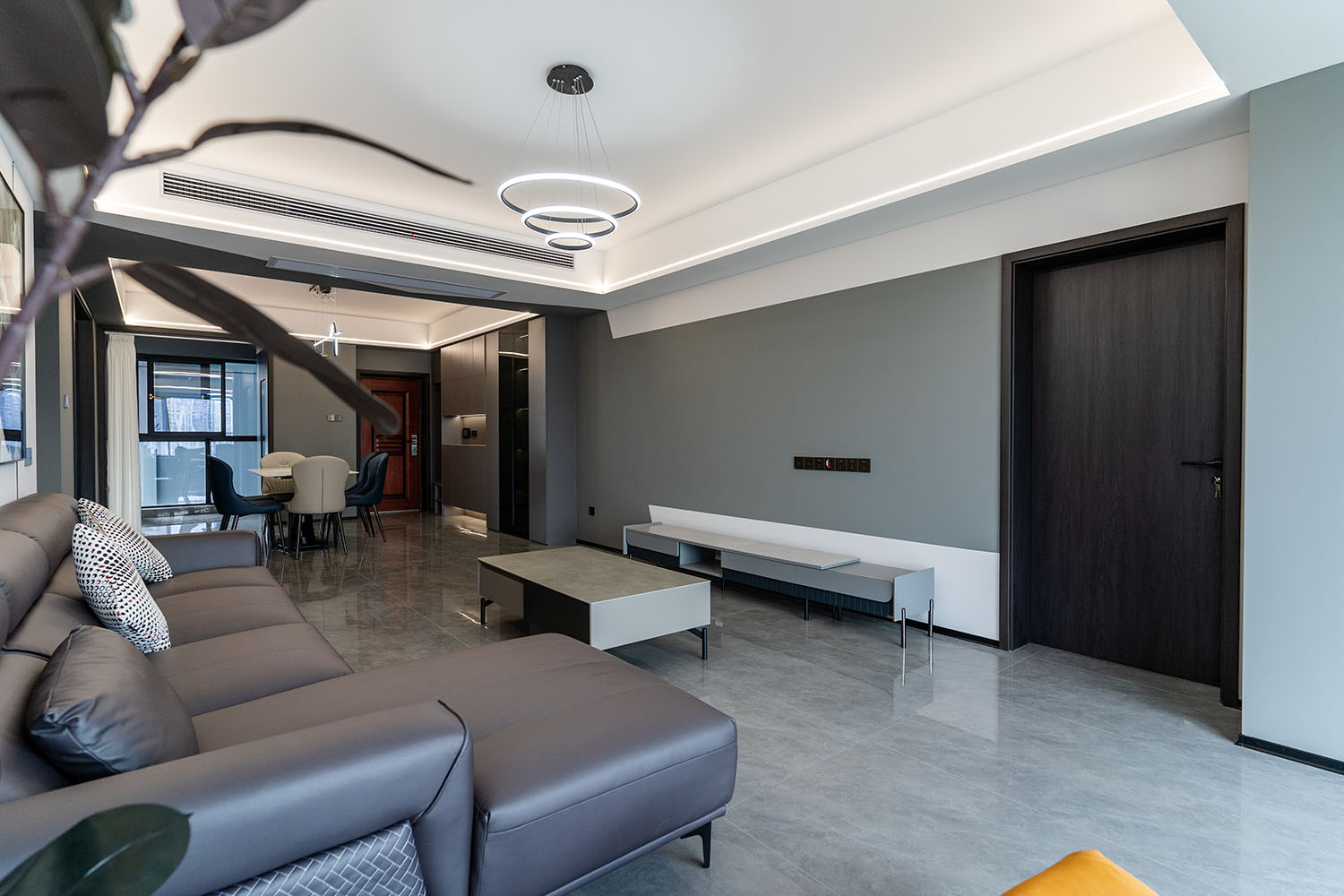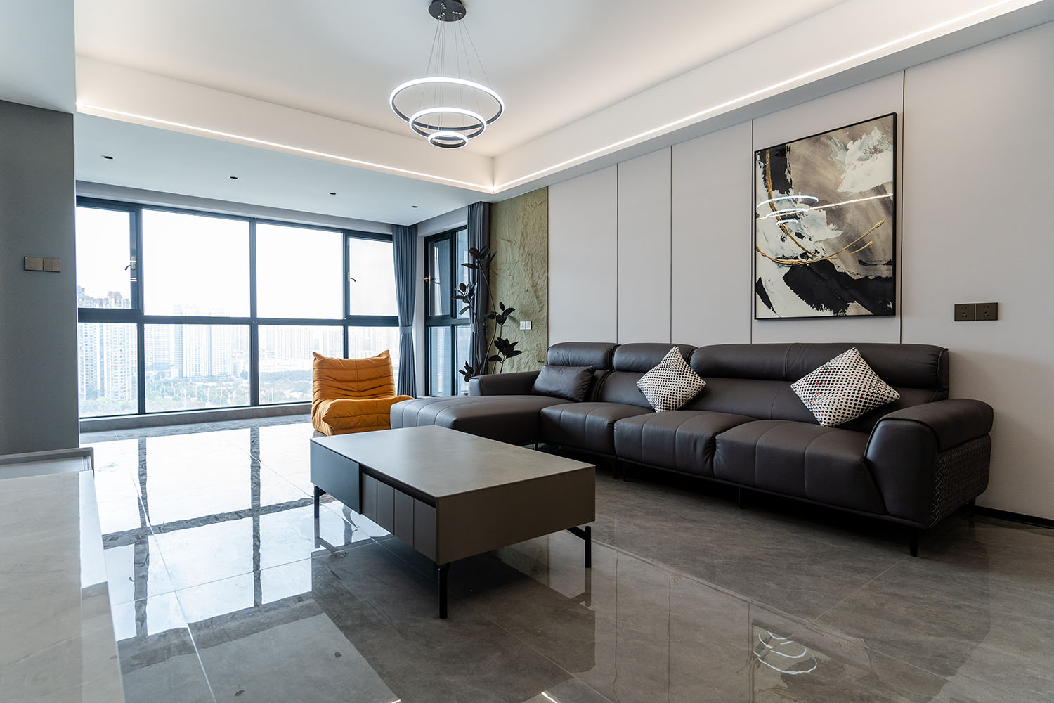 本案的核心設(shè)計(jì)理念是 “于克制中,見自由” 。旨在通過(guò)嚴(yán)謹(jǐn)?shù)臉?gòu)圖與色彩控制,展現(xiàn)一種高度理性的秩序之美。設(shè)計(jì)并非追求冰冷的極致,而是在黑白灰的框架內(nèi),通過(guò)材質(zhì)的溫度、光影的變幻與線條的韻律,注入感性的生活氣息,最終達(dá)成一種冷靜與溫暖、簡(jiǎn)約與豐富的微妙平衡,滿足都市精英對(duì)品質(zhì)與格調(diào)的雙重追求。