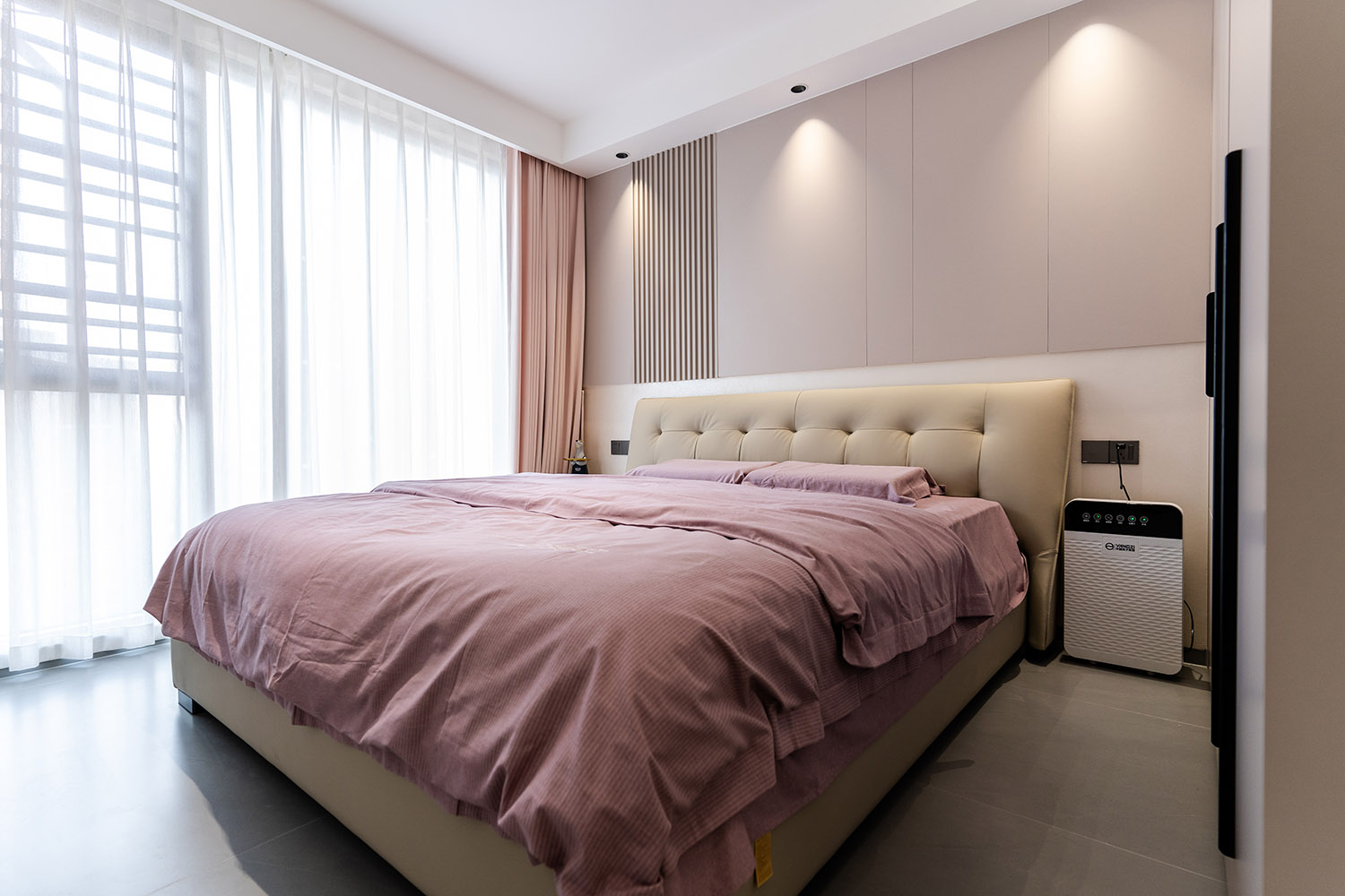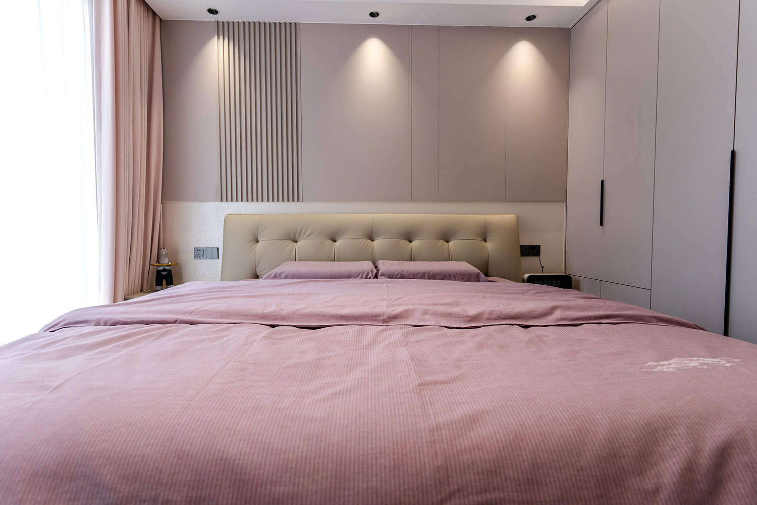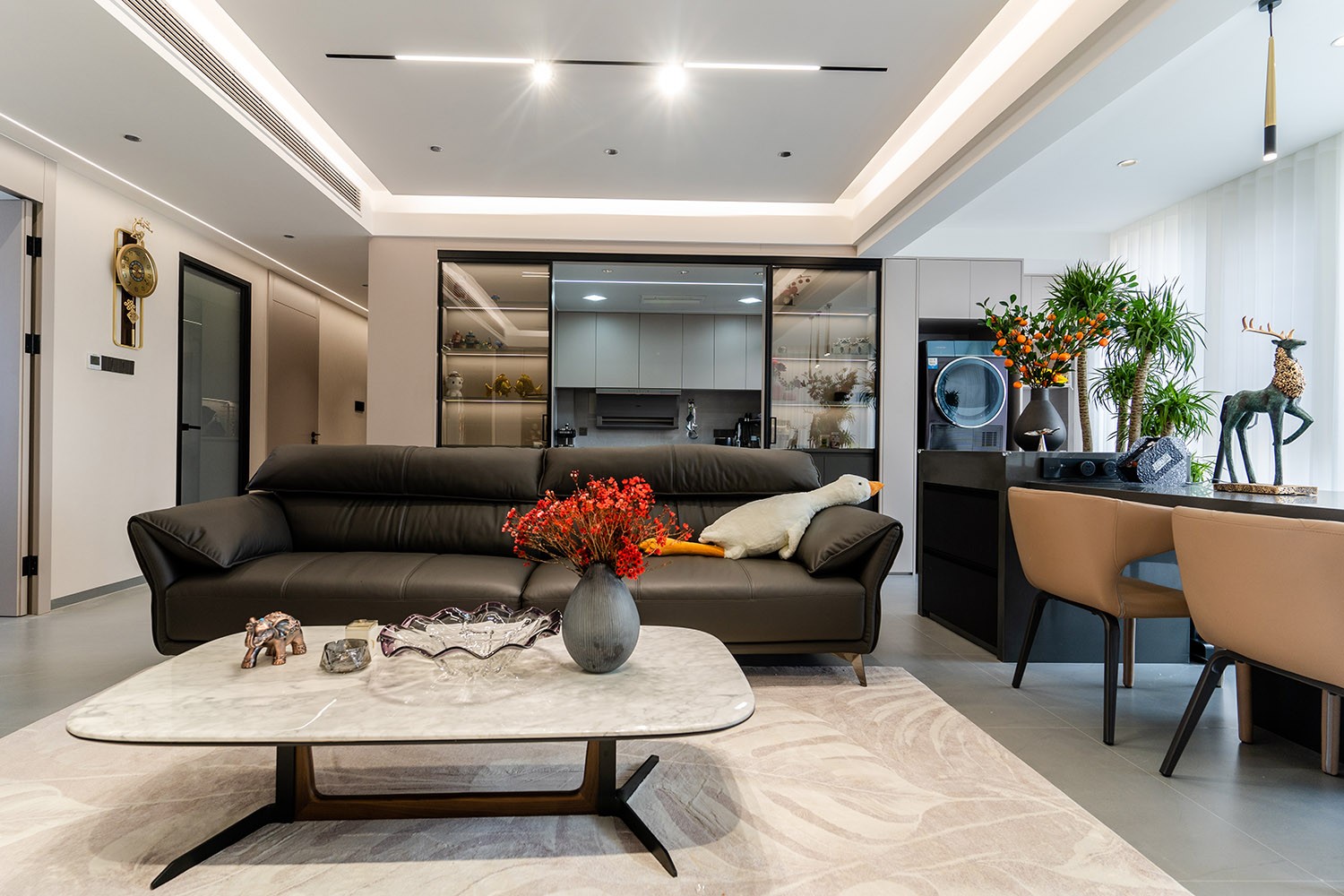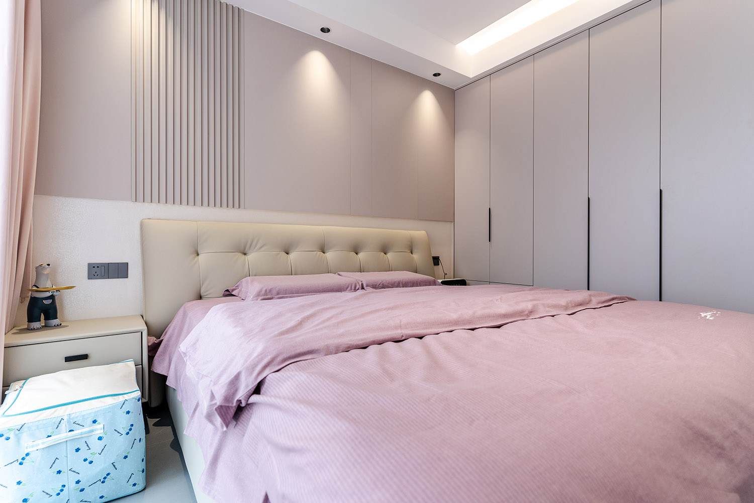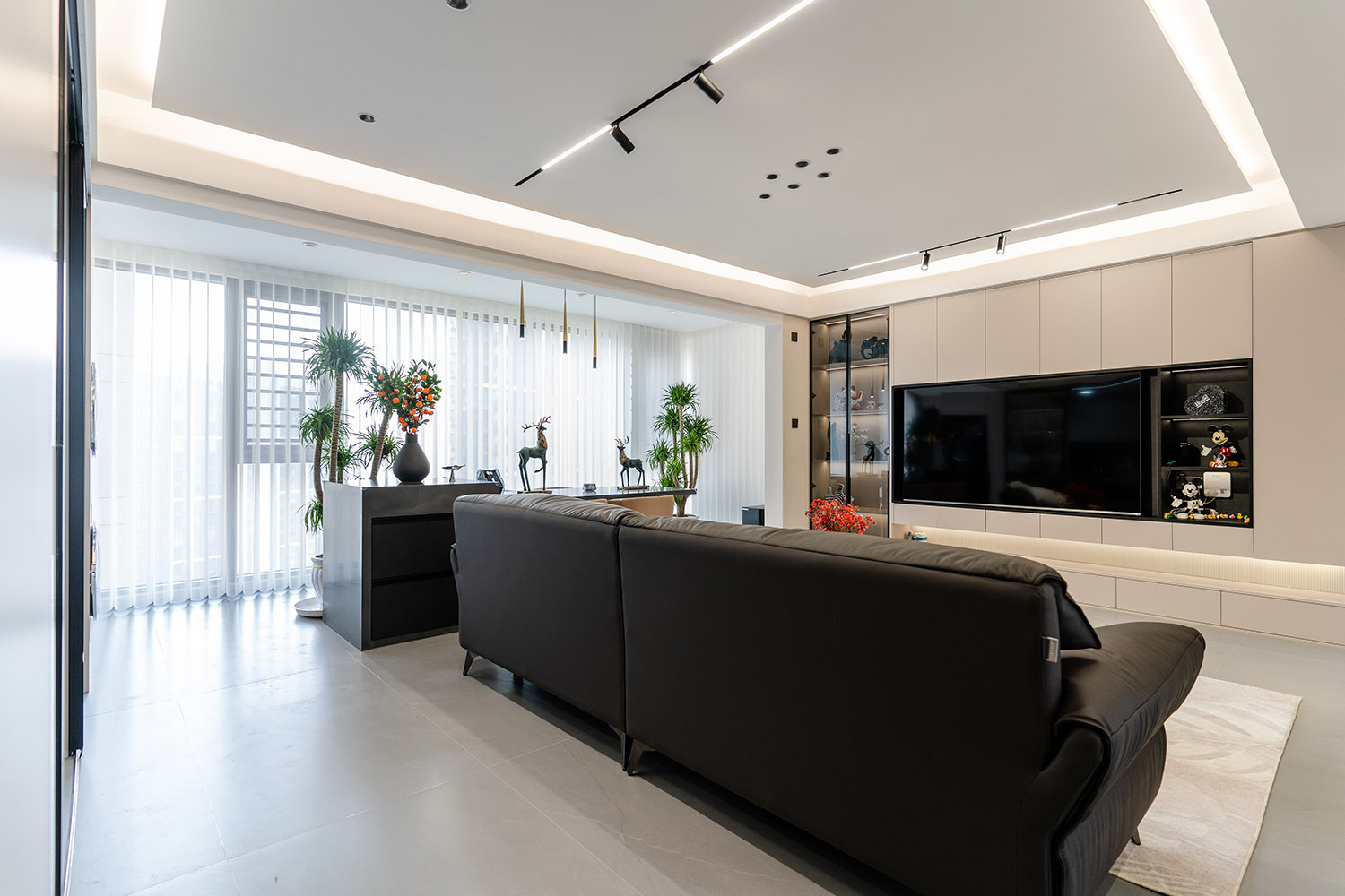 簡(jiǎn)構(gòu)生活,奢于本質(zhì) 本案的核心設(shè)計(jì)理念是 “功能顯性,裝飾隱性” 。設(shè)計(jì)追求一種“去設(shè)計(jì)師化”的純凈狀態(tài),將所有復(fù)雜的思考與工藝藏于簡(jiǎn)潔的表象之下。空間本身被視為一個(gè)功能容器與精神容器,通過(guò)極致的收納整合、無(wú)障礙的動(dòng)線規(guī)劃與柔和的感官體驗(yàn),讓居住者的生活本身成為空間最美的風(fēng)景。