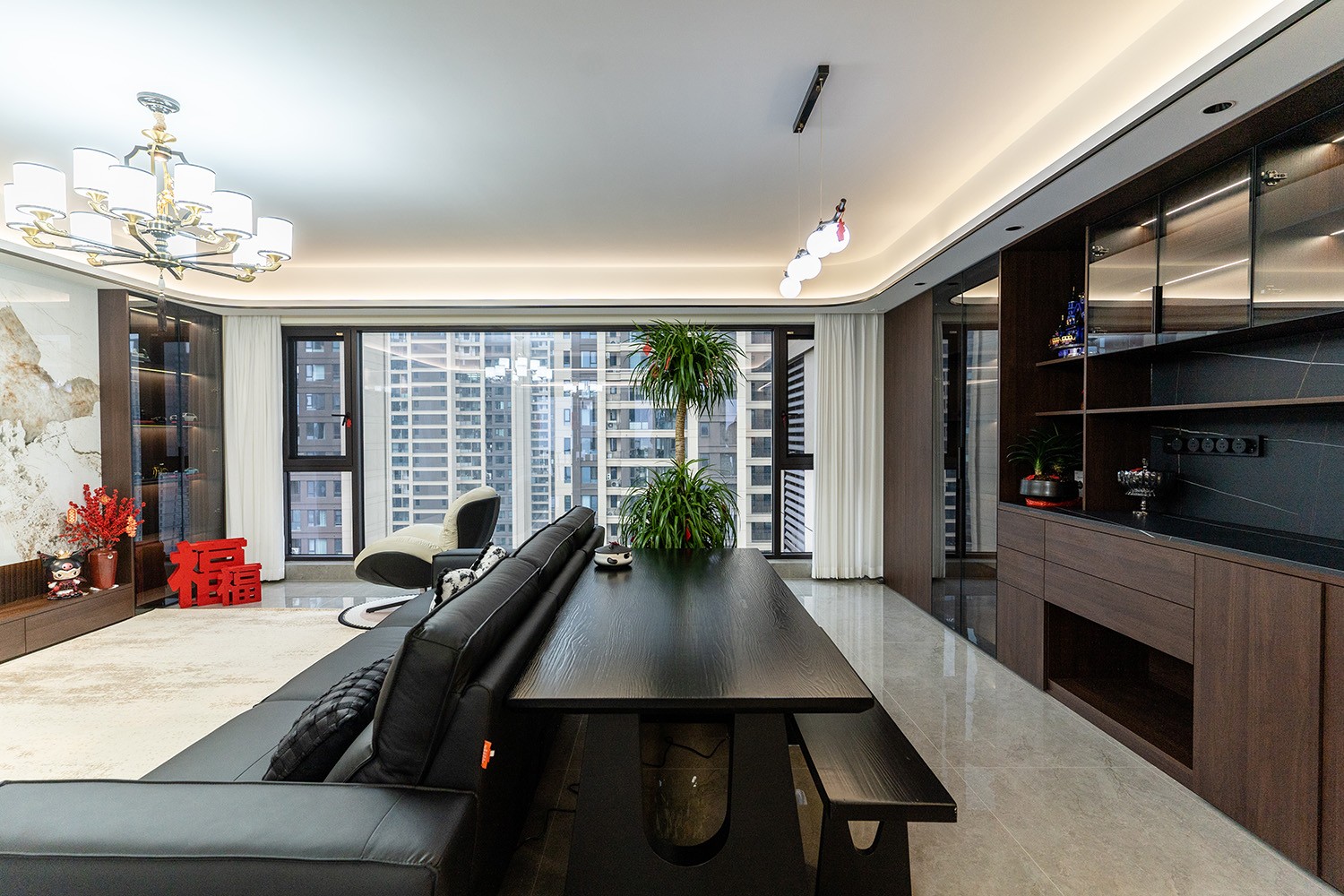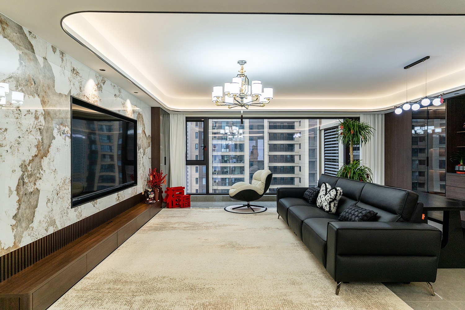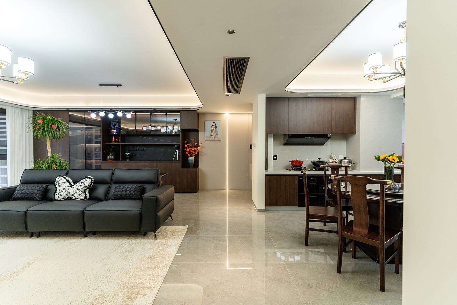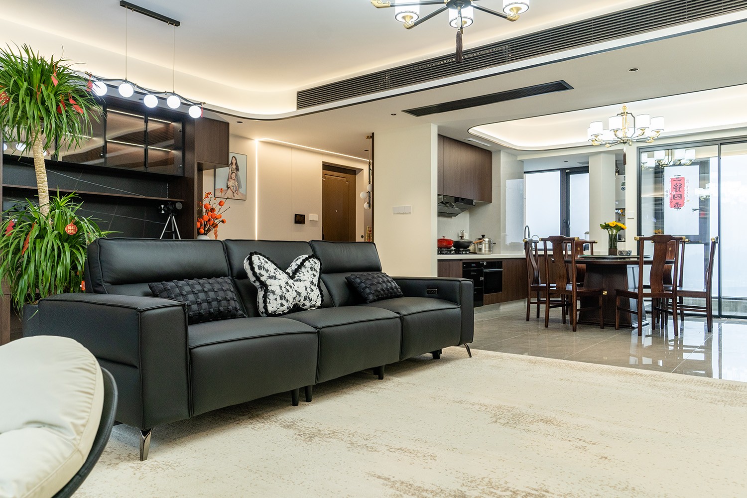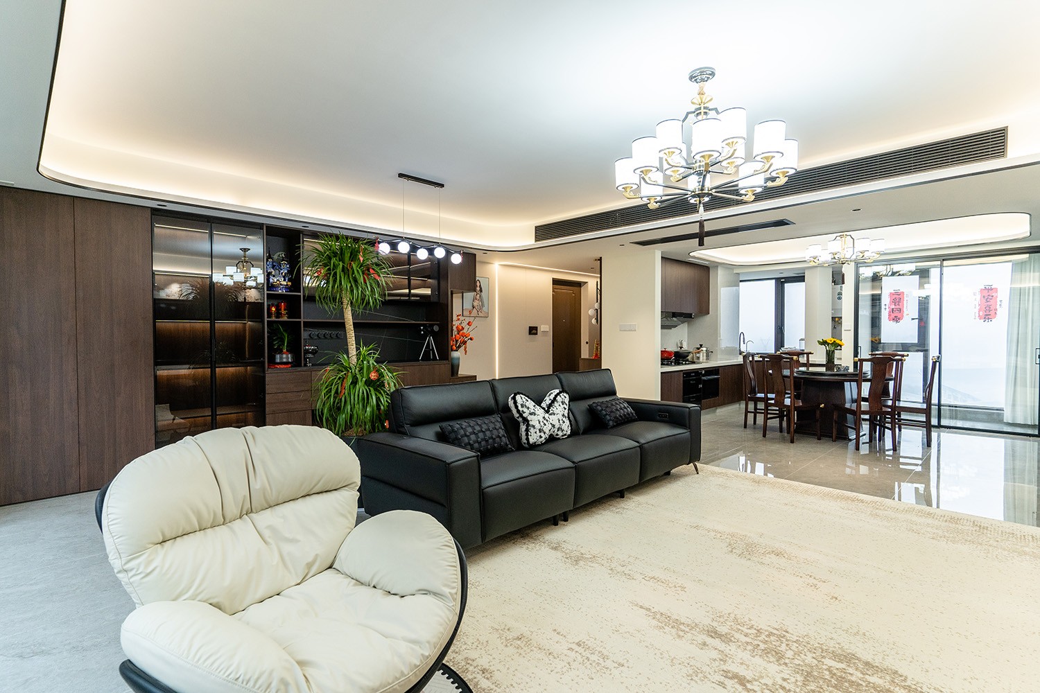 新中式風(fēng)格是東方哲學(xué)與現(xiàn)代生活的詩意融合。它不拘泥于符號的堆砌,而是通過對空間意境的營造、材質(zhì)肌理的對話與文化神韻的提煉,構(gòu)筑一個(gè)沉穩(wěn)大氣、清雅含蓄的居住空間。本案以建發(fā)央著142平米的改善型戶型為載體,深度解析如何將傳統(tǒng)文脈的精髓,轉(zhuǎn)化為一個(gè)可供當(dāng)代家族棲居、傳承與品鑒的雅致家園。 本案的核心設(shè)計(jì)理念是 “古韻今形,心居合一” 。旨在讓傳統(tǒng)的東方美學(xué),以一種更符合現(xiàn)代人生活習(xí)慣與審美的方式“活化”于空間之中。設(shè)計(jì)摒棄繁復(fù)雕飾,轉(zhuǎn)而通過留白的智慧、框景的手法、天然材質(zhì)的并置,于無形中勾勒出東方意蘊(yùn)。最終營造的,是一個(gè)能讓身心沉靜、讓家族情感凝聚的“文化容器”與“精神家園”。