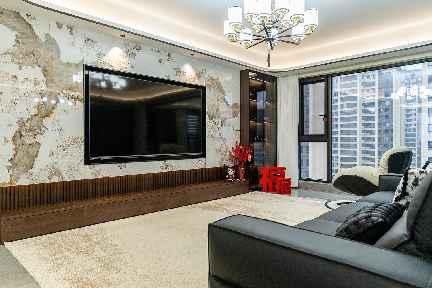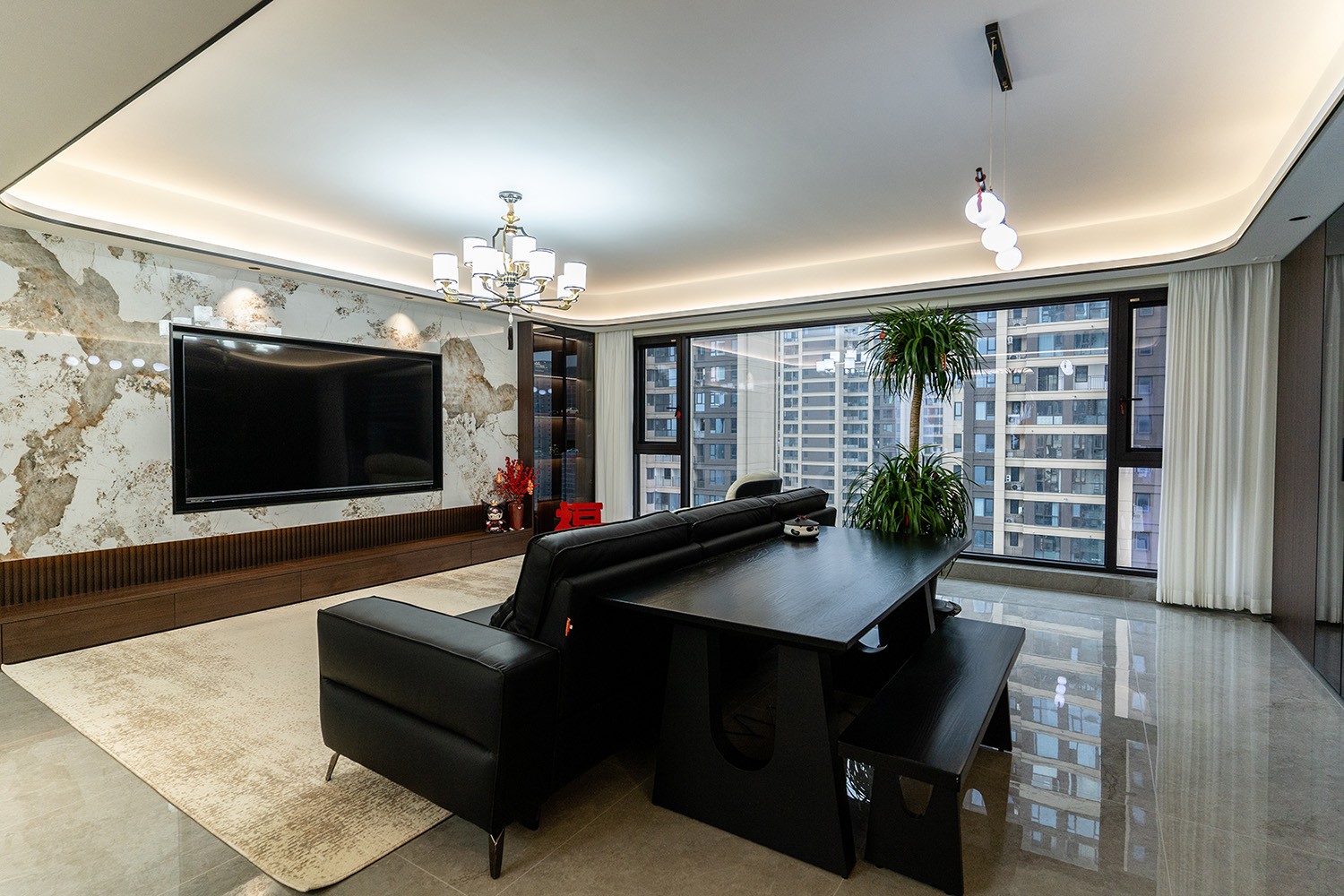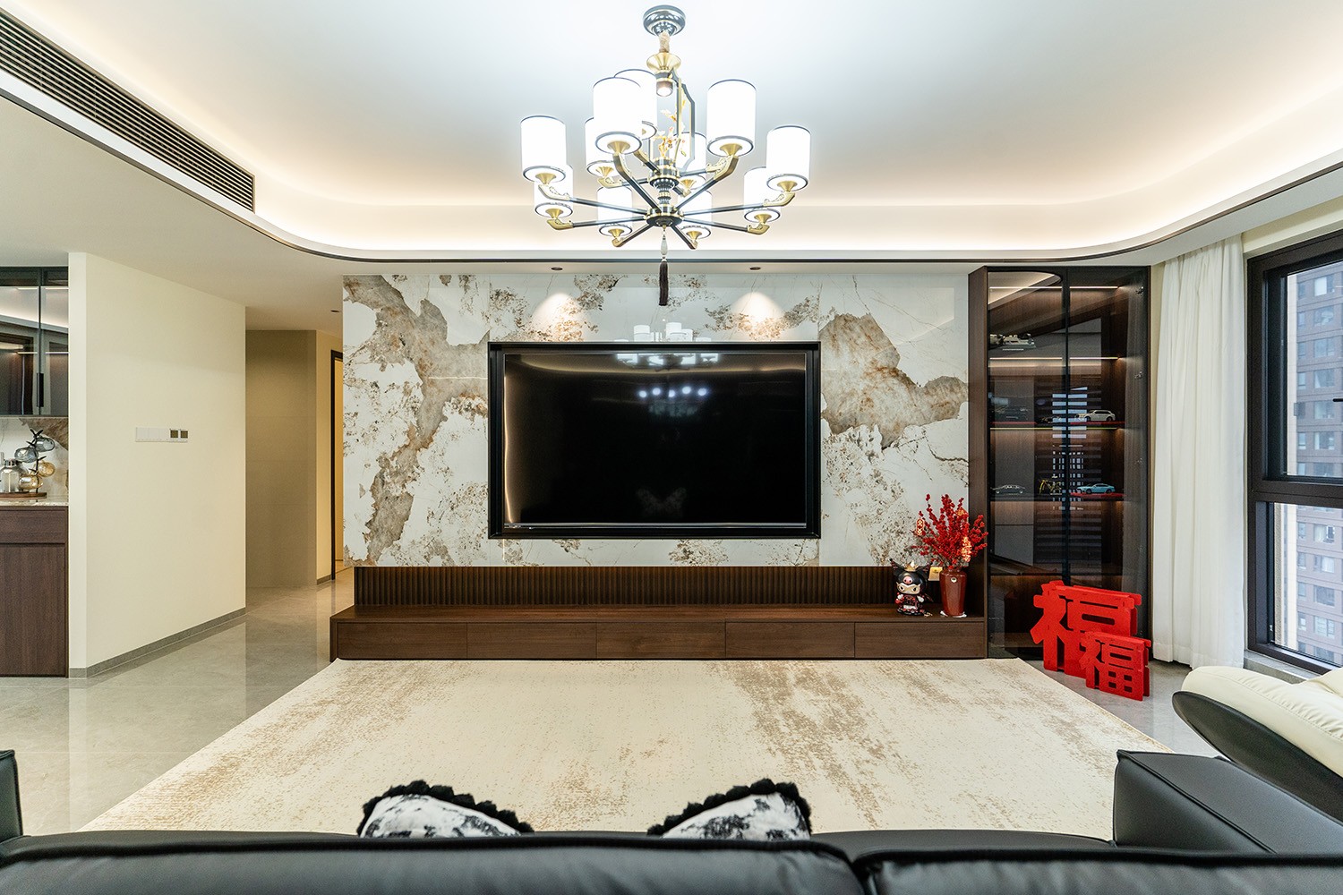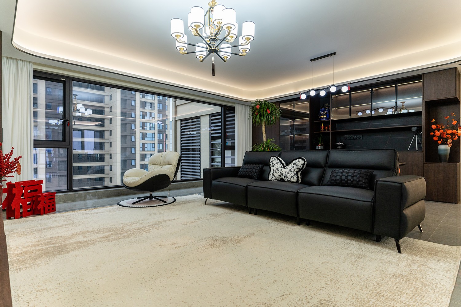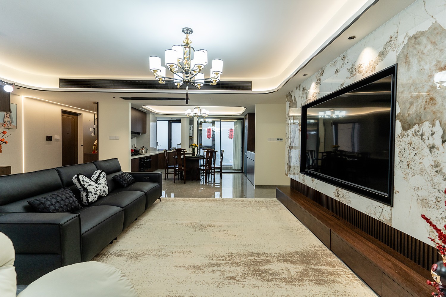 新中式風(fēng)格是東方哲學(xué)與現(xiàn)代生活的詩意融合。它不拘泥于符號的堆砌,而是通過對空間意境的營造、材質(zhì)肌理的對話與文化神韻的提煉,構(gòu)筑一個(gè)沉穩(wěn)大氣、清雅含蓄的居住空間。本案以建發(fā)央著142平米的改善型戶型為載體,深度解析如何將傳統(tǒng)文脈的精髓,轉(zhuǎn)化為一個(gè)可供當(dāng)代家族棲居、傳承與品鑒的雅致家園。 本案的核心設(shè)計(jì)理念是 “古韻今形,心居合一” 。旨在讓傳統(tǒng)的東方美學(xué),以一種更符合現(xiàn)代人生活習(xí)慣與審美的方式“活化”于空間之中。設(shè)計(jì)摒棄繁復(fù)雕飾,轉(zhuǎn)而通過留白的智慧、框景的手法、天然材質(zhì)的并置,于無形中勾勒出東方意蘊(yùn)。最終營造的,是一個(gè)能讓身心沉靜、讓家族情感凝聚的“文化容器”與“精神家園”。