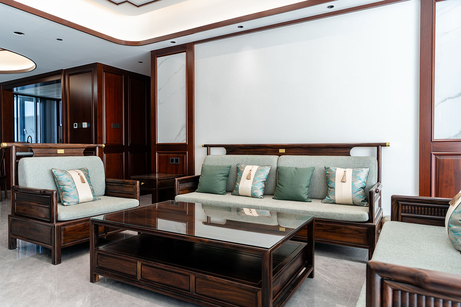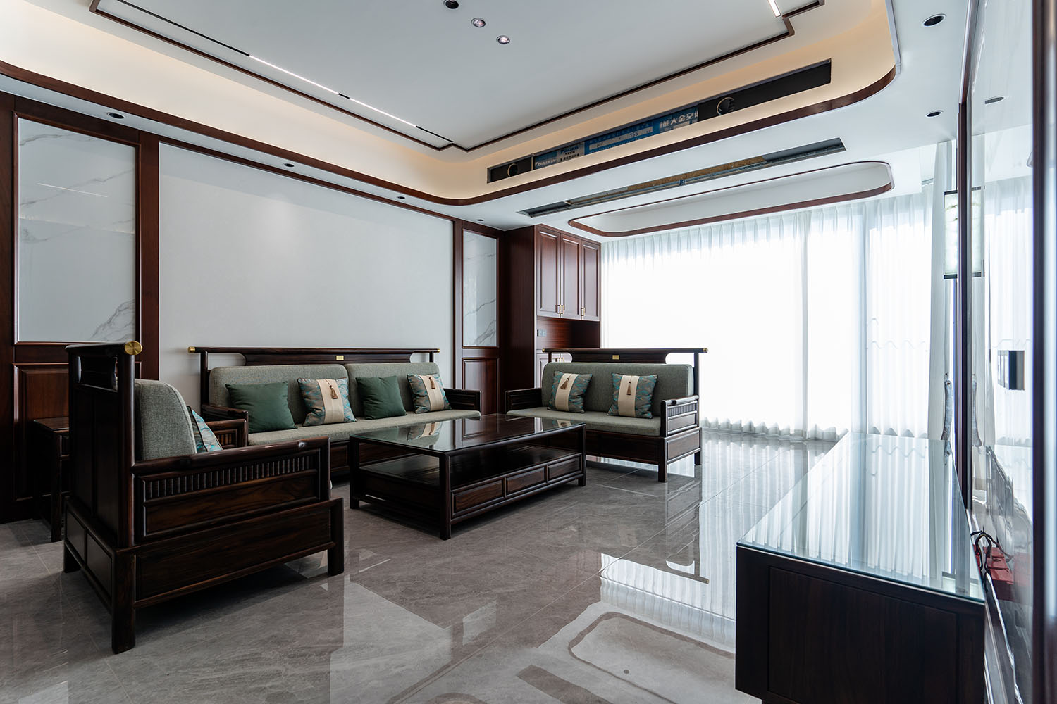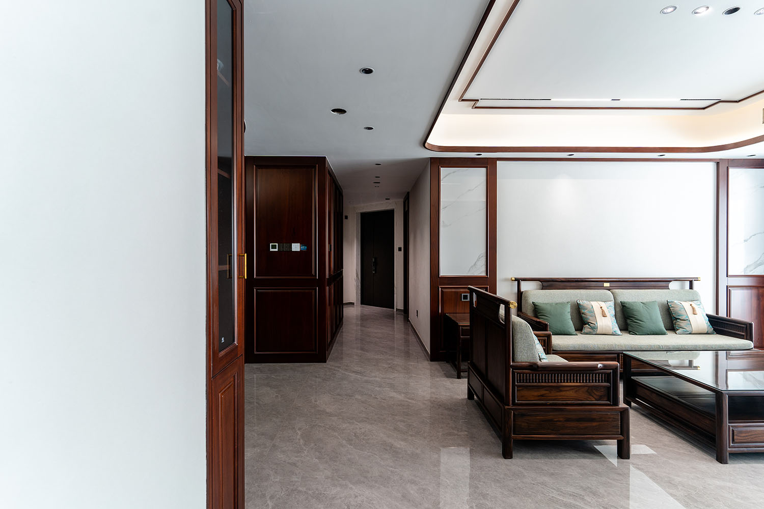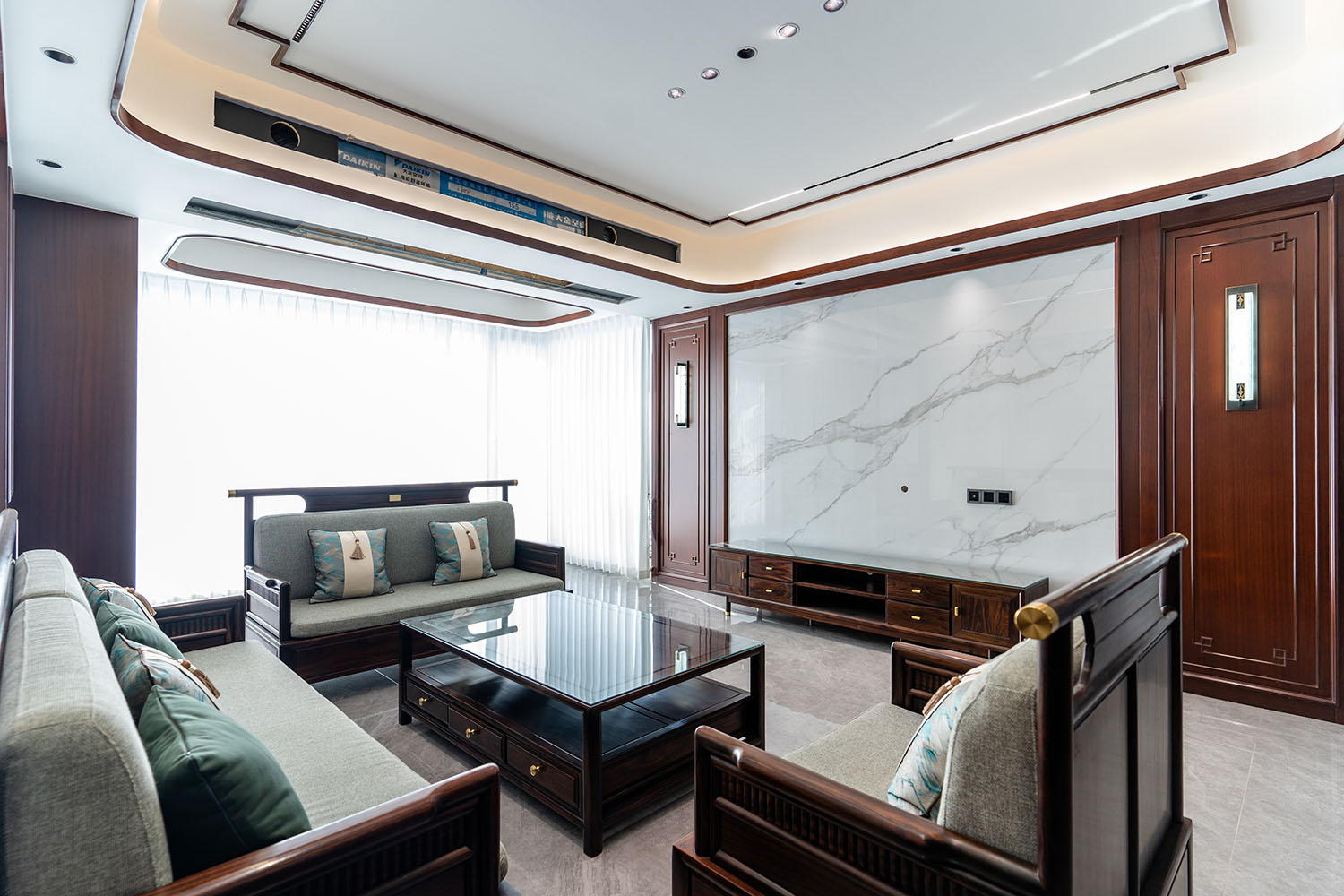 本案的核心設(shè)計(jì)理念是 “大象無(wú)形,大音希聲” 。旨在以恢弘的空間尺度,承載最含蓄內(nèi)斂的東方意境。設(shè)計(jì)追求的不僅是形式的呈現(xiàn),更是空間氣場(chǎng)、文脈氣韻與生活氣息的完美融合。通過(guò)中軸對(duì)稱、虛實(shí)相生、框景借景等傳統(tǒng)造園手法,在現(xiàn)代大宅的框架內(nèi),營(yíng)造出一種可供三代同堂觀想、品鑒與傳承的居住體驗(yàn)。 新中式風(fēng)格,是東方美學(xué)智慧與現(xiàn)代居住哲學(xué)的集大成者。在180平米的寬闊天地里,它得以超越符號(hào)的堆砌,轉(zhuǎn)而通過(guò)宏大的空間敘事、深層的材質(zhì)對(duì)話與詩(shī)意的意境營(yíng)造,打造一座兼具文化傳承、家族風(fēng)范與當(dāng)代奢華的傳世府邸。