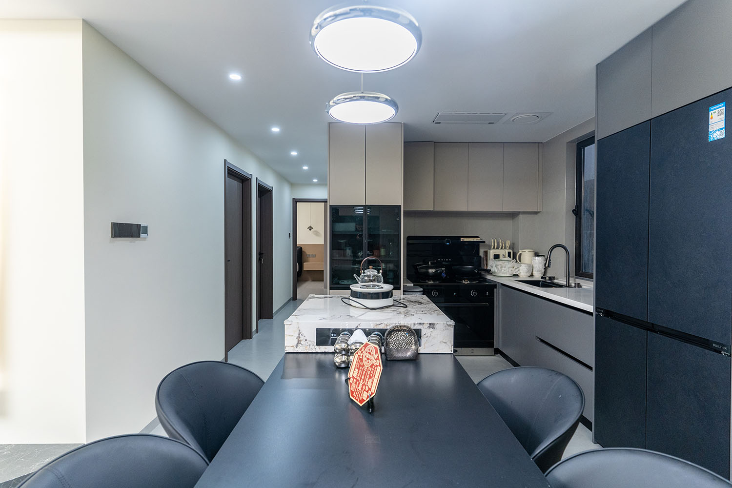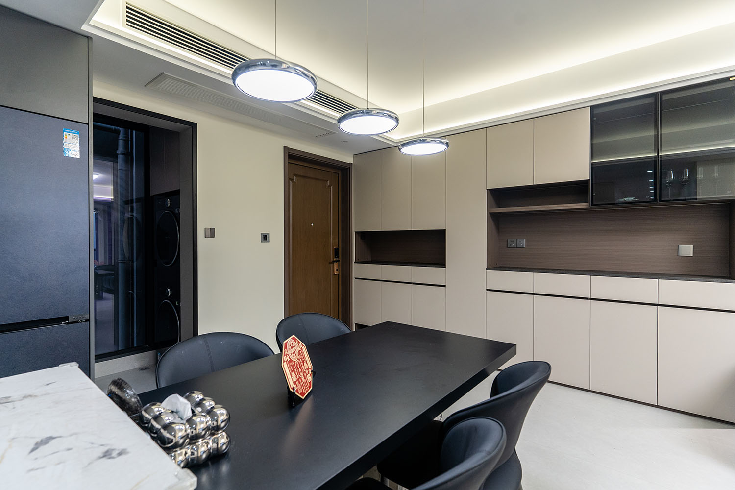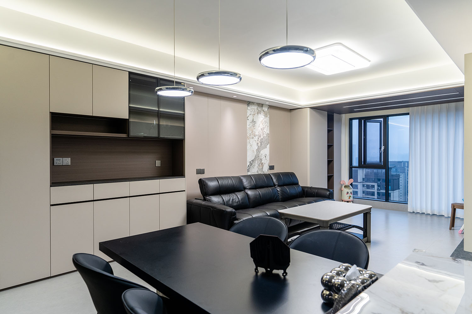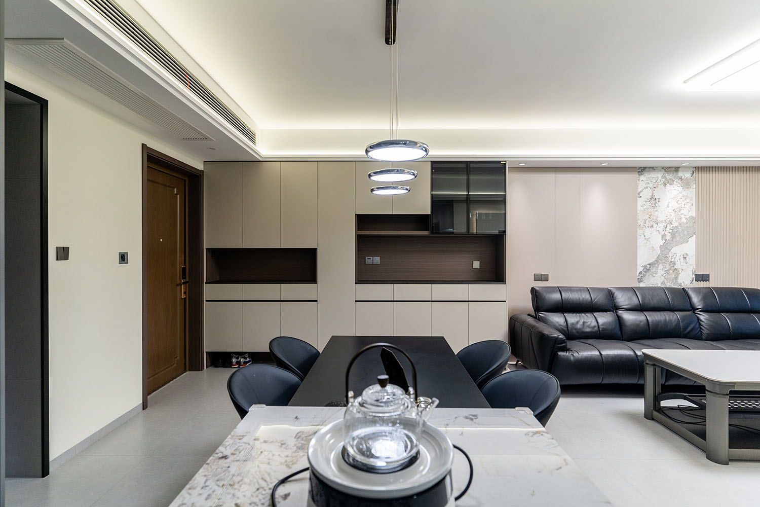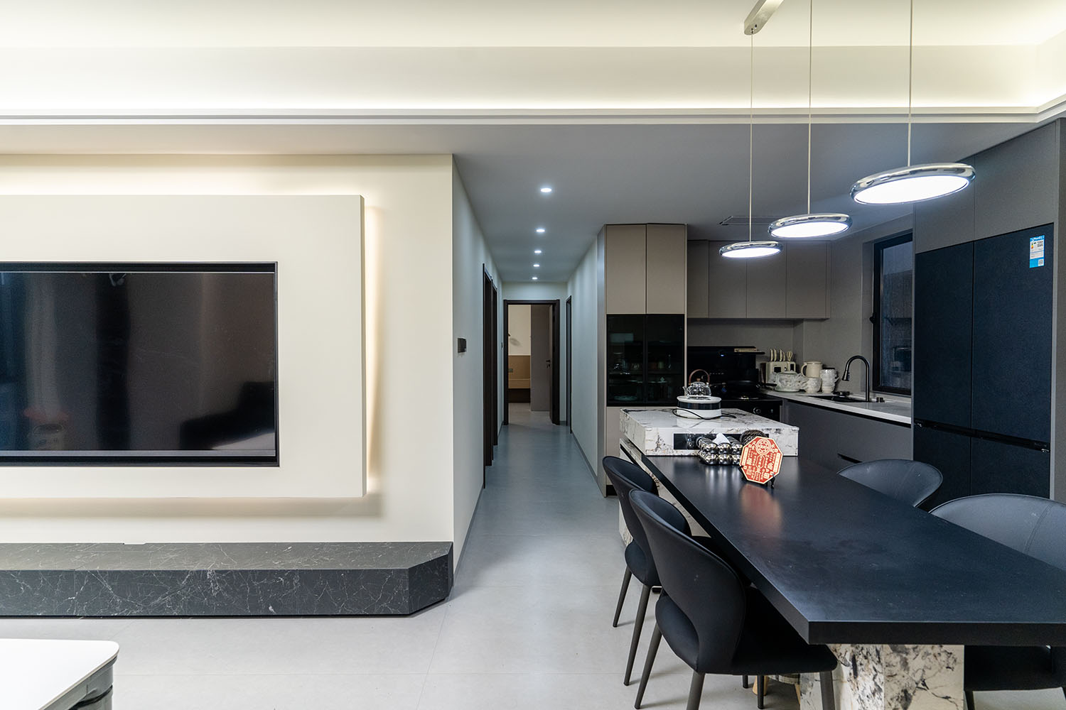 株洲建發(fā)央著115平米現(xiàn)代風(fēng)格,以 “功能為綱,體驗(yàn)為魂” 為核心設(shè)計(jì)理念,將空間視為一個(gè)高效運(yùn)轉(zhuǎn)的精工系統(tǒng)。設(shè)計(jì)摒棄一切非必要的裝飾,將每一寸面積都轉(zhuǎn)化為提升居住品質(zhì)的有效價(jià)值,通過(guò)科學(xué)動(dòng)線、模塊化收納與智能人居的考量,為居者量身打造一個(gè)在視覺(jué)上極度清爽、在使用上極致便捷、在感受上無(wú)比放松的沉浸式居住體驗(yàn)。 本案的核心理念在于 “定制化效率,沉浸式舒適” ?,F(xiàn)代風(fēng)格強(qiáng)調(diào)功能與形式的統(tǒng)一,在115平米的三居室空間中,設(shè)計(jì)師以“少即是多”為原則,通過(guò)極簡(jiǎn)的線條、克制的色彩和純粹的材料,打造一個(gè)干凈、通透且富有高級(jí)感的居住空間,滿足都市精英對(duì)高效、舒適生活的追求。 株洲建發(fā)央著115平米現(xiàn)代風(fēng)格空間,通過(guò)對(duì)功能、材質(zhì)、光影和收納的精準(zhǔn)把控,實(shí)現(xiàn)了“功能為綱,體驗(yàn)為魂”的設(shè)計(jì)理想。用幾何切割光影,用反差喚醒空間靈魂,每一處設(shè)計(jì)都在回應(yīng)著現(xiàn)代家庭對(duì)品質(zhì)、舒適與美學(xué)的多重需求。 褪去浮華,回歸本真。在黑白灰的底色里,一盞暖調(diào)落地?zé)羰巧钜沟呐惆椋恢昃G植是呼吸的自然注解,灰調(diào)沙發(fā)上的褶皺藏著生活的溫度??酥?,是為了讓真正重要的事物發(fā)光。 當(dāng)腳步的回聲被墻壁溫柔包裹,那些刻意保留的留白,恰是造景?,F(xiàn)代之境,是對(duì)生活本真的追尋,是對(duì)內(nèi)心寧?kù)o的向往——讓我們?cè)诳旃?jié)奏的都市生活中,尋得一片可以放慢腳步、沉淀心靈的凈土,感受生活最純粹的美好。 這不僅僅是一個(gè)居住空間,更是一個(gè)能夠承載日常詩(shī)意、安放生活想象的精工范本。在理性的空間秩序中,譜寫出感性的生活詩(shī)篇。