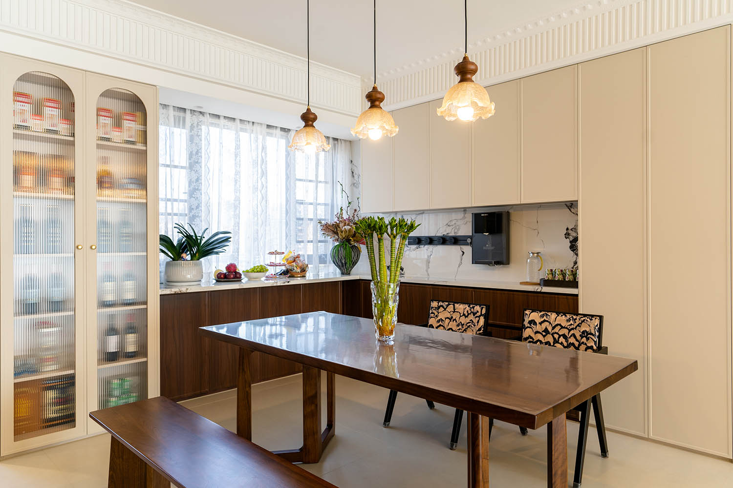 復(fù)古的色調(diào),仿佛是歲月沉淀的詩(shī)篇;細(xì)膩的紋理,講述著往昔的故事。吊燈投射出溫暖而柔和的光照亮了角落里被遺忘的時(shí)光。它帶著舊時(shí)光的韻味,卻又不失現(xiàn)代的靈動(dòng)。