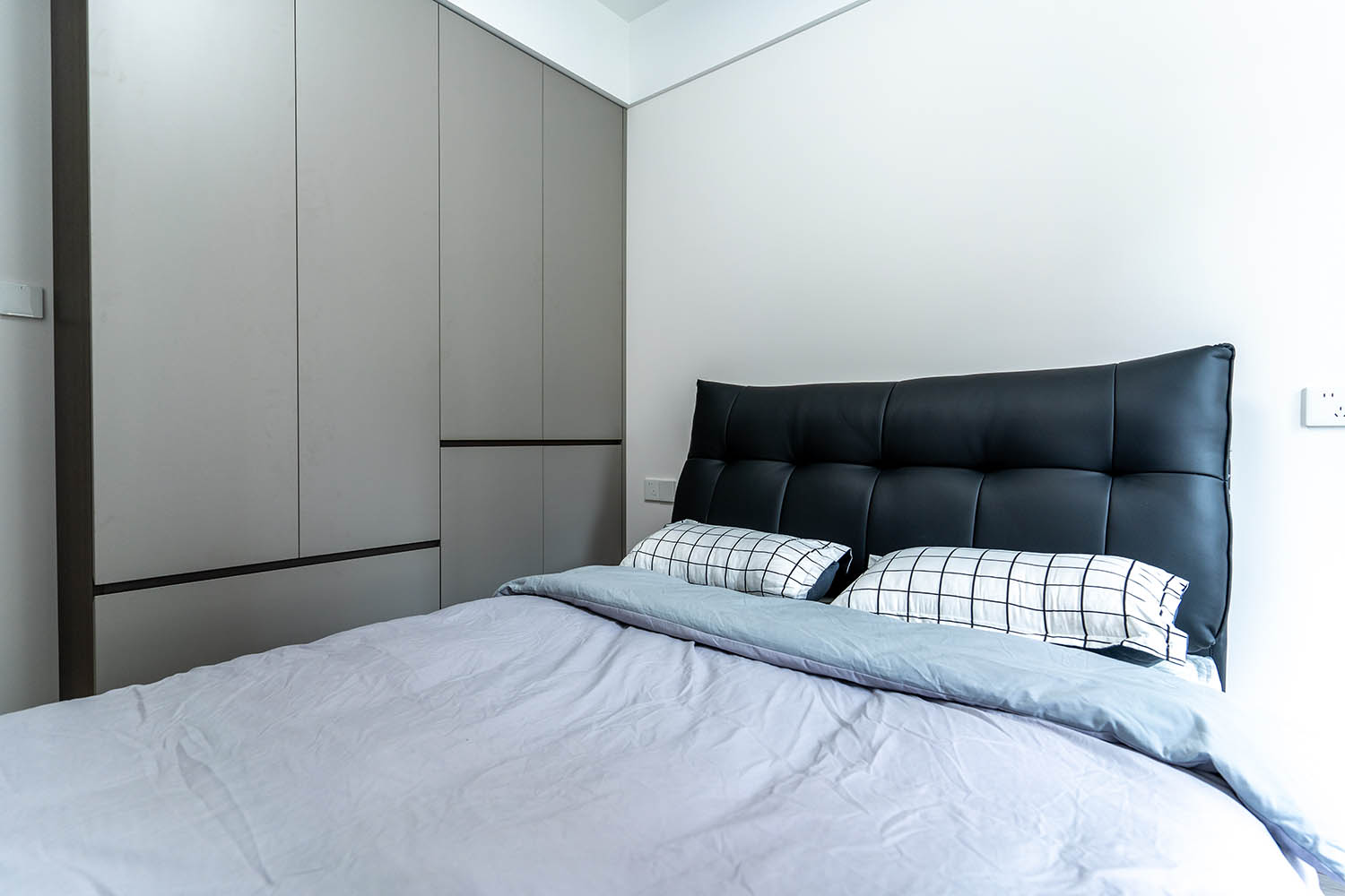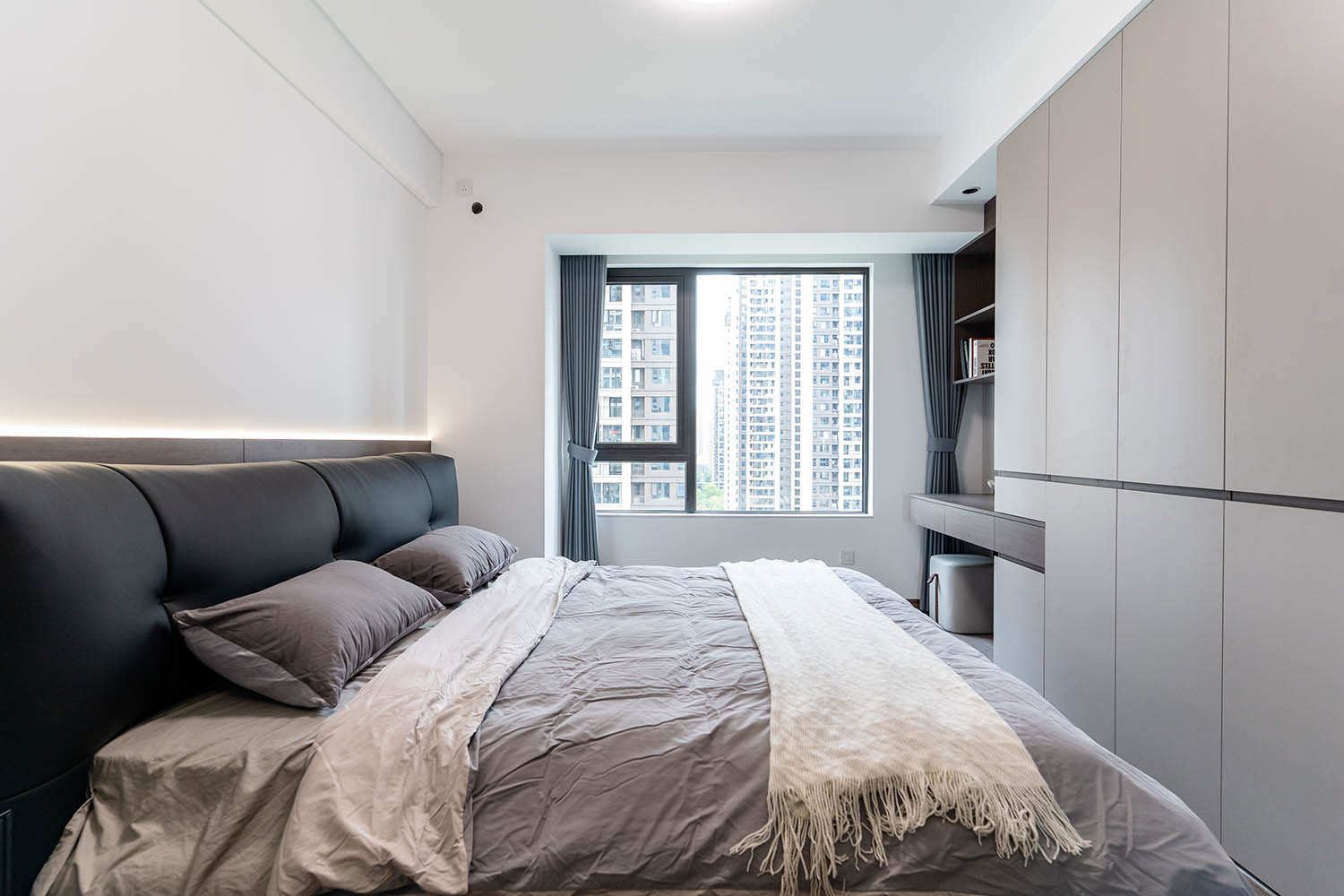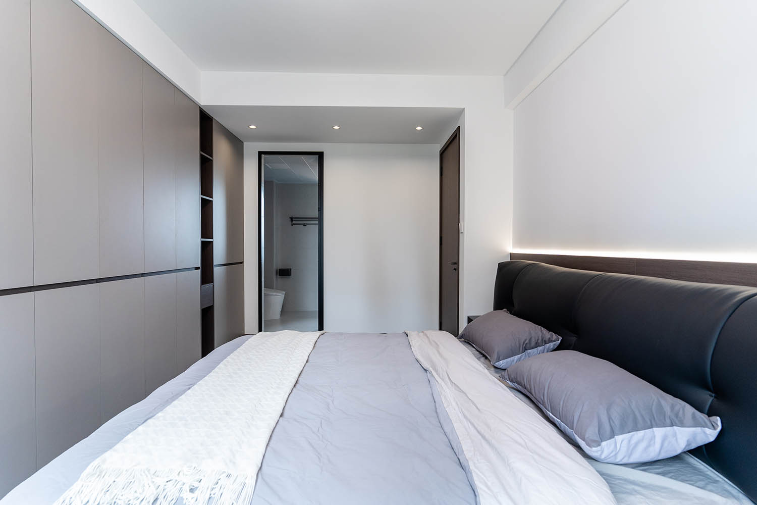 用黑、白、灰的經(jīng)典碰撞,詮釋意式極簡的「做減法的藝術(shù)」。沒有冗余裝飾,以利落線條、純粹色調(diào),讓空間回歸「實(shí)用與質(zhì)感共生」的本質(zhì),每一處都藏著 “用必要定義高級” 的設(shè)計(jì)智慧。 無主燈設(shè)計(jì) + 線性燈帶,讓光線柔和包裹空間;黑色皮質(zhì)沙發(fā)簡化形態(tài),與灰色背景墻呼應(yīng),詮釋意式「隱于簡的高級感」,舍去繁雜裝飾,還原空間本真互動場域。每一寸存在都值得被凝視,讓走過空間的人,忍不住贊嘆這份 “不動聲色的精致” 。