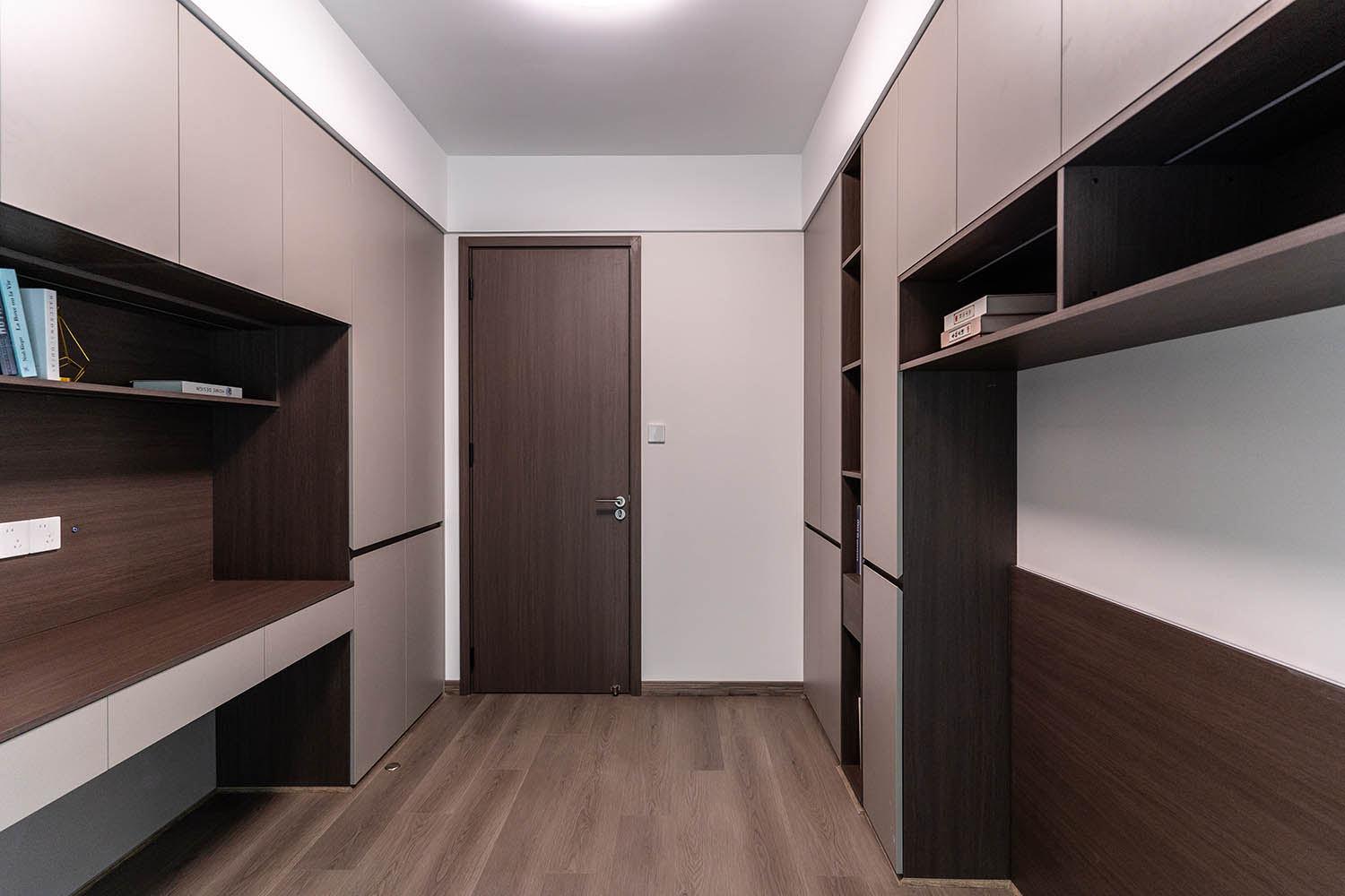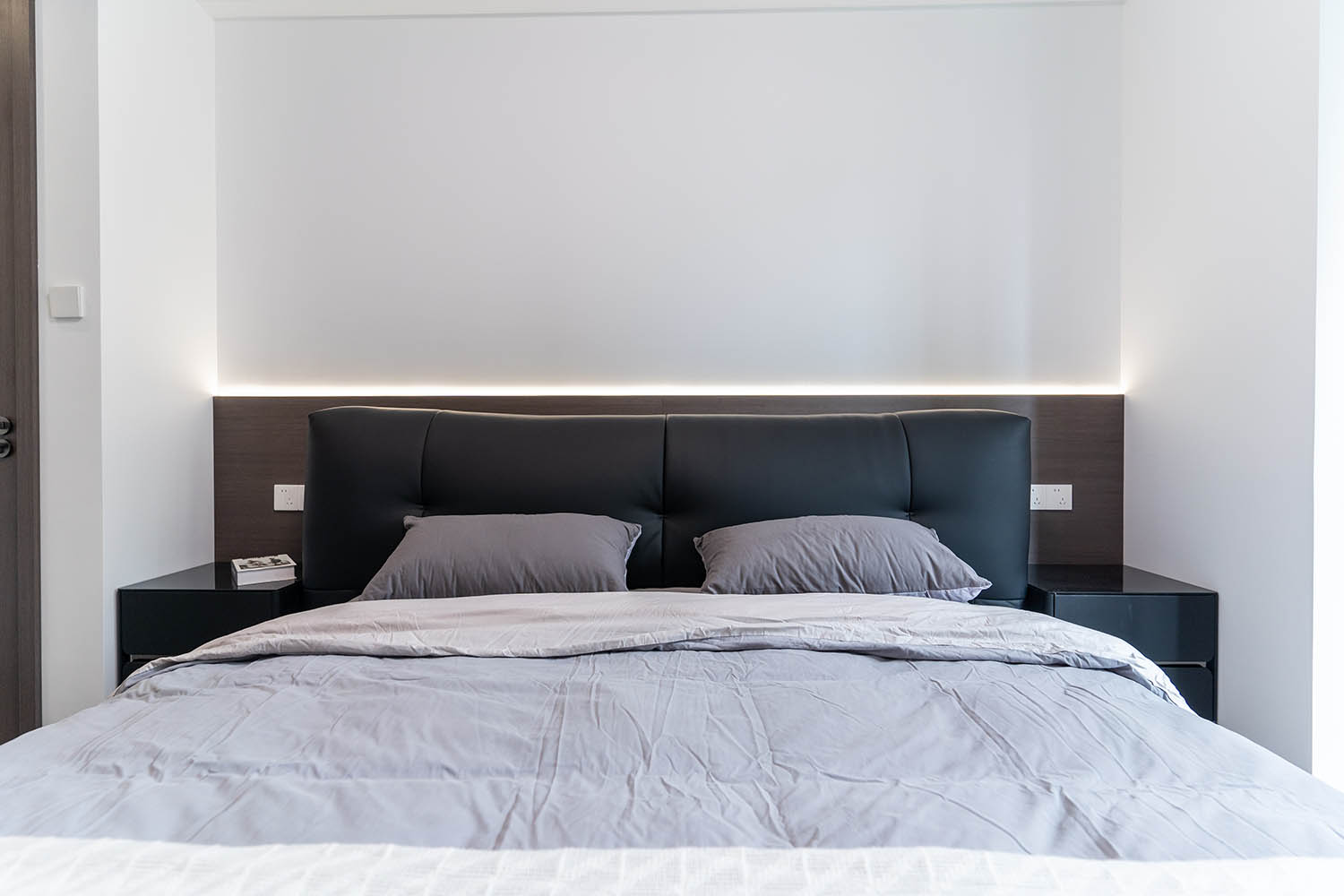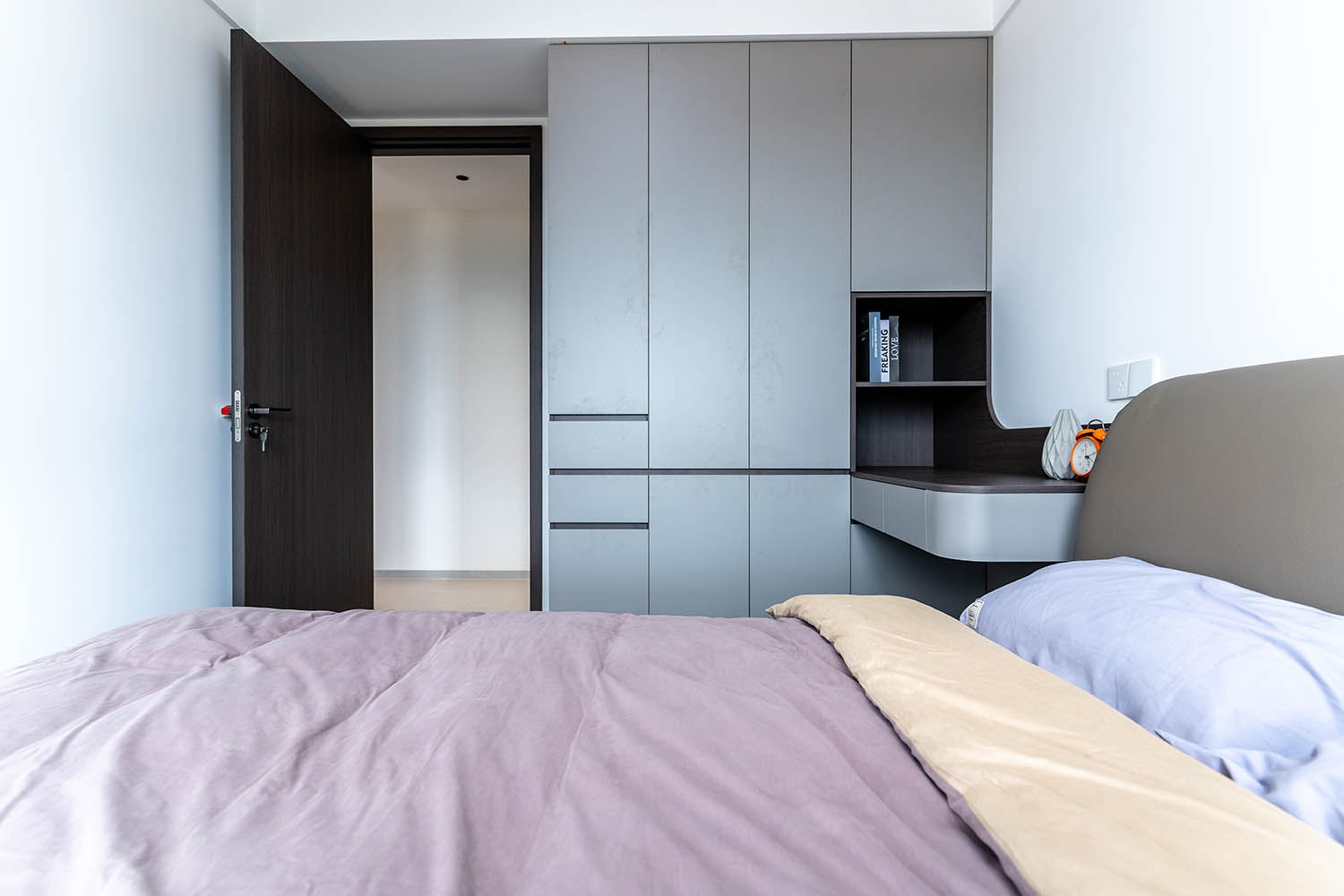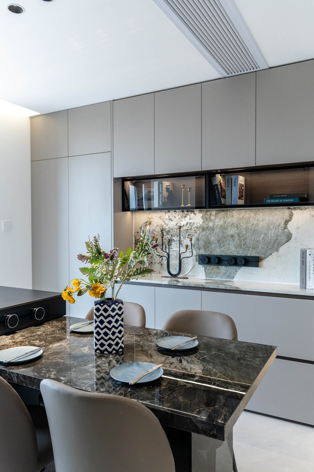 用黑、白、灰的經(jīng)典碰撞,詮釋意式極簡的「做減法的藝術(shù)」。沒有冗余裝飾,以利落線條、純粹色調(diào),讓空間回歸「實(shí)用與質(zhì)感共生」的本質(zhì),每一處都藏著 “用必要定義高級” 的設(shè)計(jì)智慧。 無主燈設(shè)計(jì) + 線性燈帶,讓光線柔和包裹空間;黑色皮質(zhì)沙發(fā)簡化形態(tài),與灰色背景墻呼應(yīng),詮釋意式「隱于簡的高級感」,舍去繁雜裝飾,還原空間本真互動場域。每一寸存在都值得被凝視,讓走過空間的人,忍不住贊嘆這份 “不動聲色的精致” 。