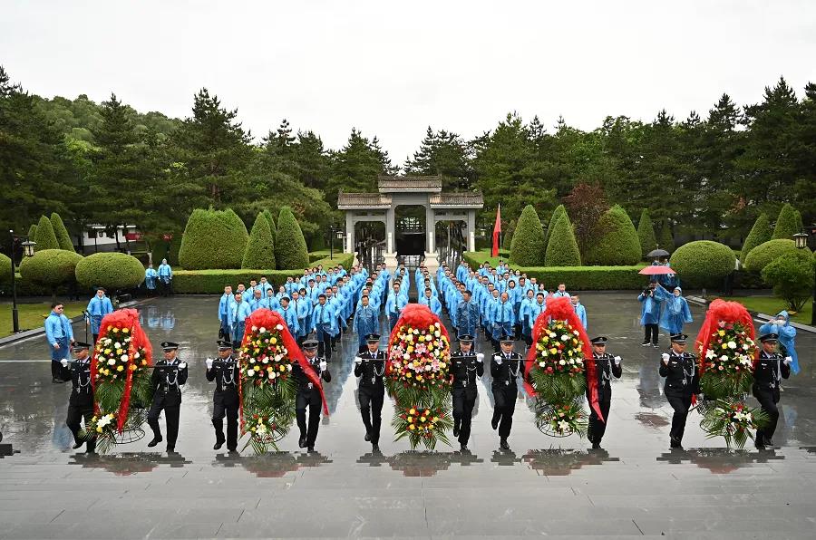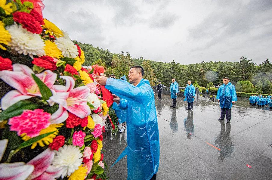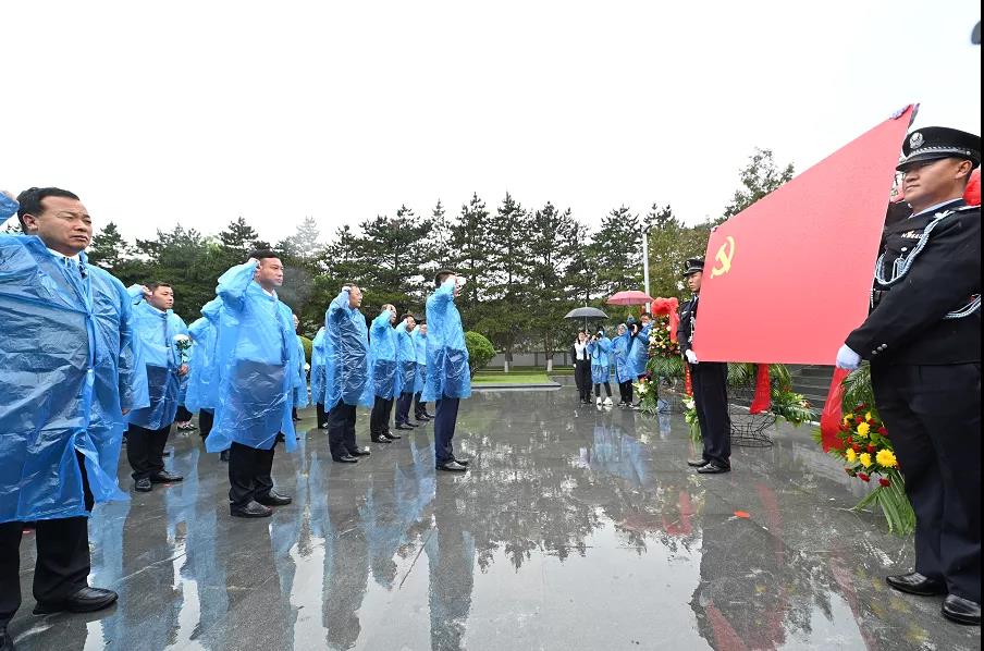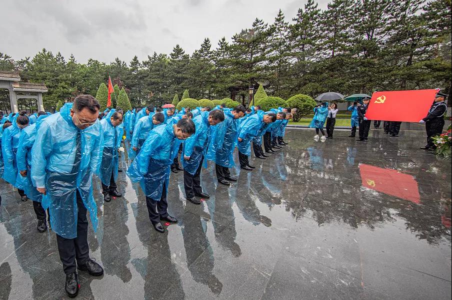 在紀(jì)念廣場上,遼寧方大集團(tuán)100名黨員代表跨越千里從祖國的四面八方趕到甘肅南梁,在雨中向浴血奮戰(zhàn)、英勇犧牲的革命英烈致敬,掀起遼寧方大集團(tuán)黨史教育活動的新高潮。