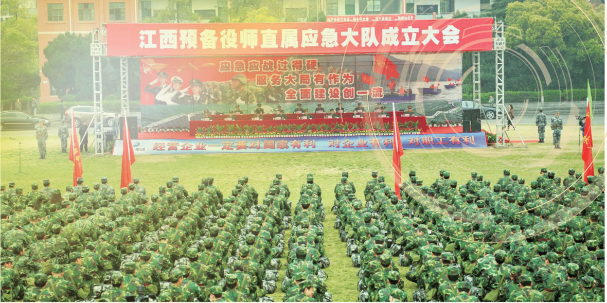 方大特鋼現(xiàn)編有江西陸軍預(yù)備役步兵師應(yīng)急直屬大隊(duì),成立于2011年4月9日,下設(shè)一個(gè)警衛(wèi)調(diào)整連,一個(gè)有線電連和一個(gè)無線電排,編制300人。主要任務(wù)為搶險(xiǎn)救災(zāi)、應(yīng)急維穩(wěn)處突。公司預(yù)備役官兵多次圓滿完成搶險(xiǎn)救災(zāi)任務(wù),連續(xù)三年被江西陸軍預(yù)備役步兵師評(píng)為先進(jìn)連隊(duì),2020年7月還參加了江西省永修縣三角聯(lián)圩潰堤抗洪搶險(xiǎn)任務(wù),轉(zhuǎn)移受災(zāi)群眾百余人,受到軍地領(lǐng)導(dǎo)的肯定和當(dāng)?shù)厝罕姷馁澴u(yù)。